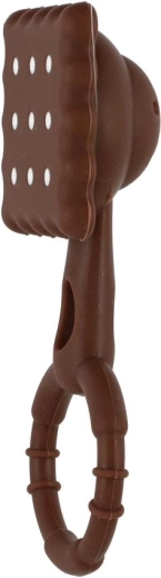 Originální „sušenkový“ design podněcuje zvídavost, měkký a flexibilní silikon je příjemný na dotek a šetrný k citlivým dásním. Jemné chrastění podporuje vnímání zvuku bez rušivého hluku. Povrch s texturou napomáhá masáži dásní a přispívá k přirozenému uklidnění miminka.