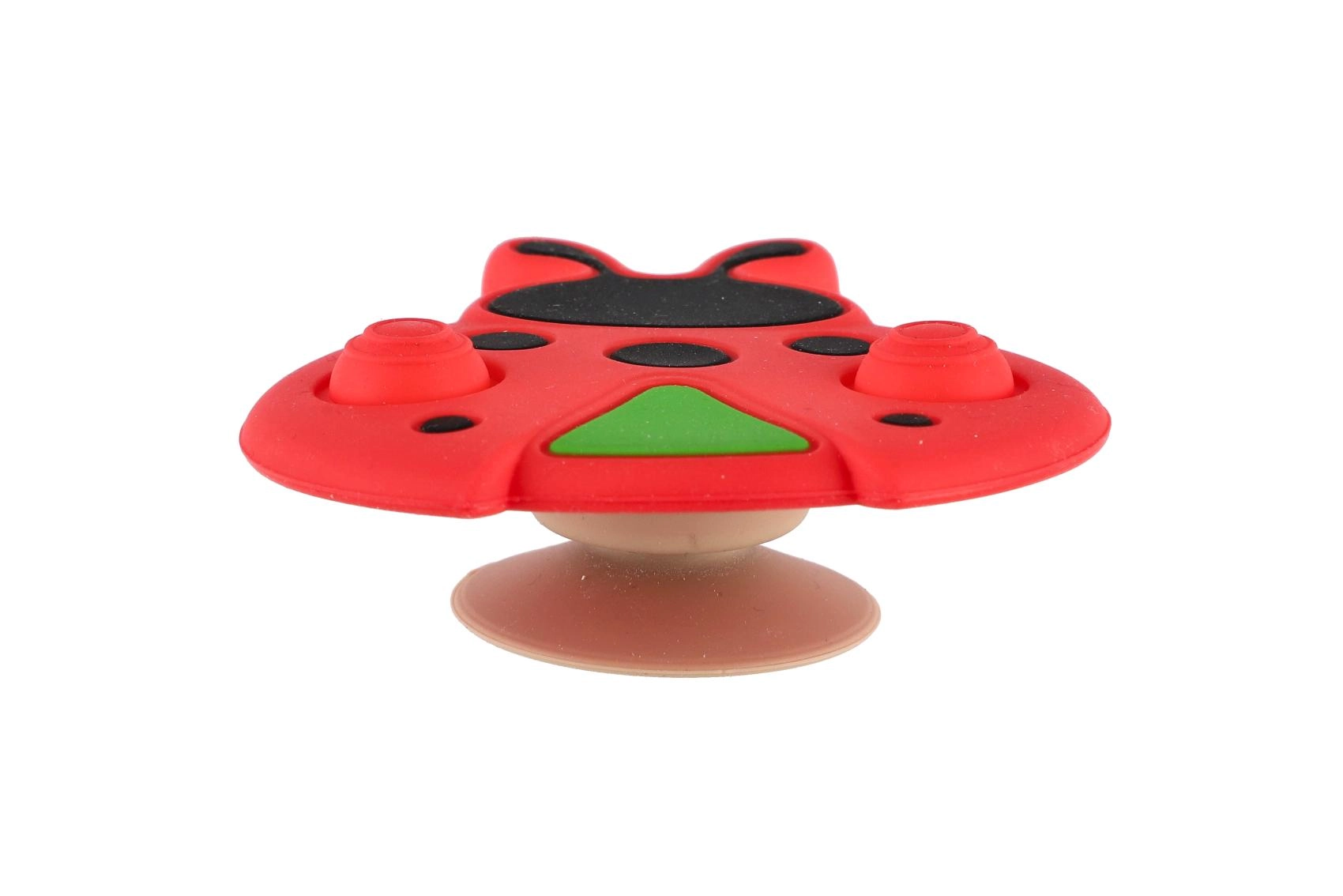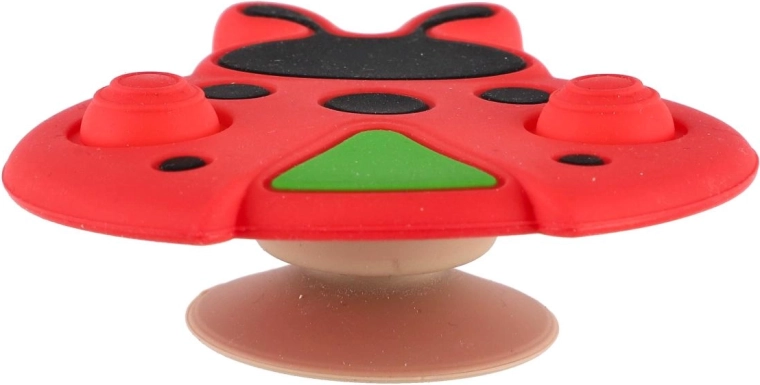 Tato smyslová hračka ve tvaru berušky je ideální pro první objevování světa. Díky kombinaci měkkého silikonu a pevného plastu je příjemná na dotek, bezpečná a vydrží každodenní používání. Přísavka umožní hračku snadno připevnit na stůl, jídelní židličku či vaničku, takže zůstane na místě a dítě ji může pohodlně prozkoumávat.