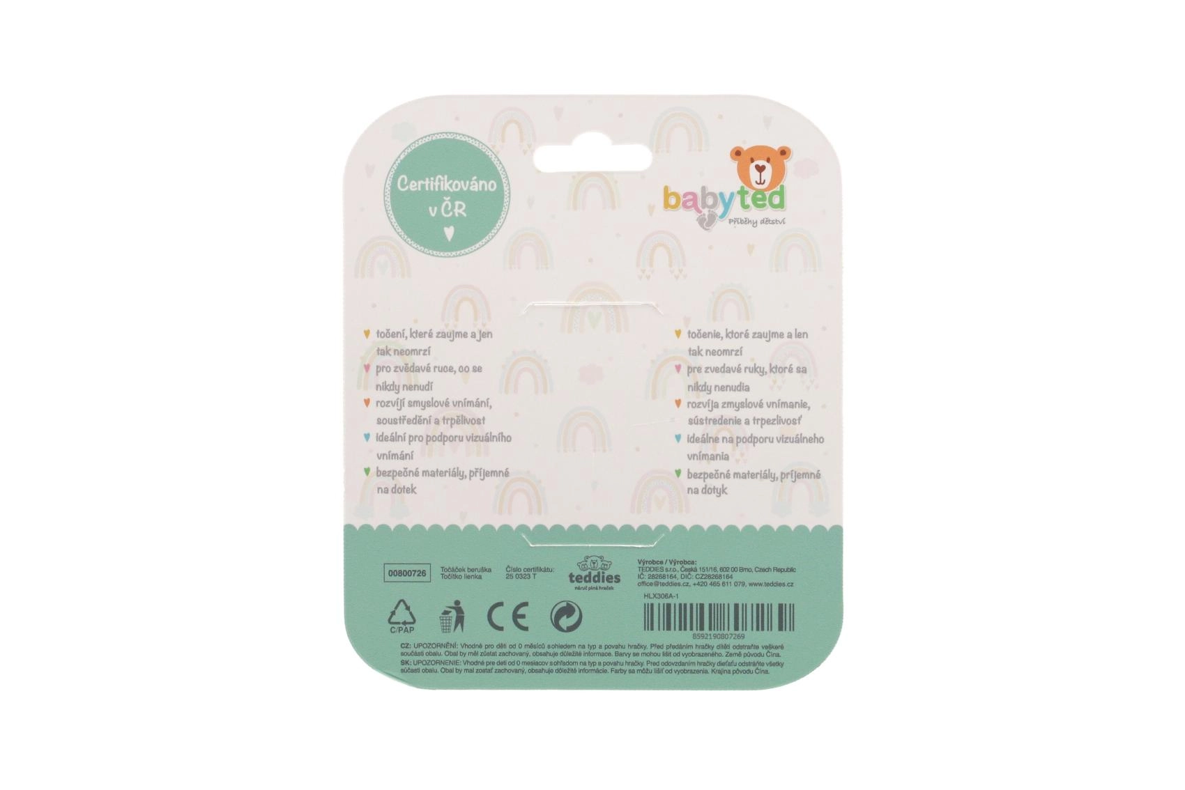 Otočný mechanismus a bublinky pro mačkání podporují koordinaci oko–ruka a jemnou motoriku.