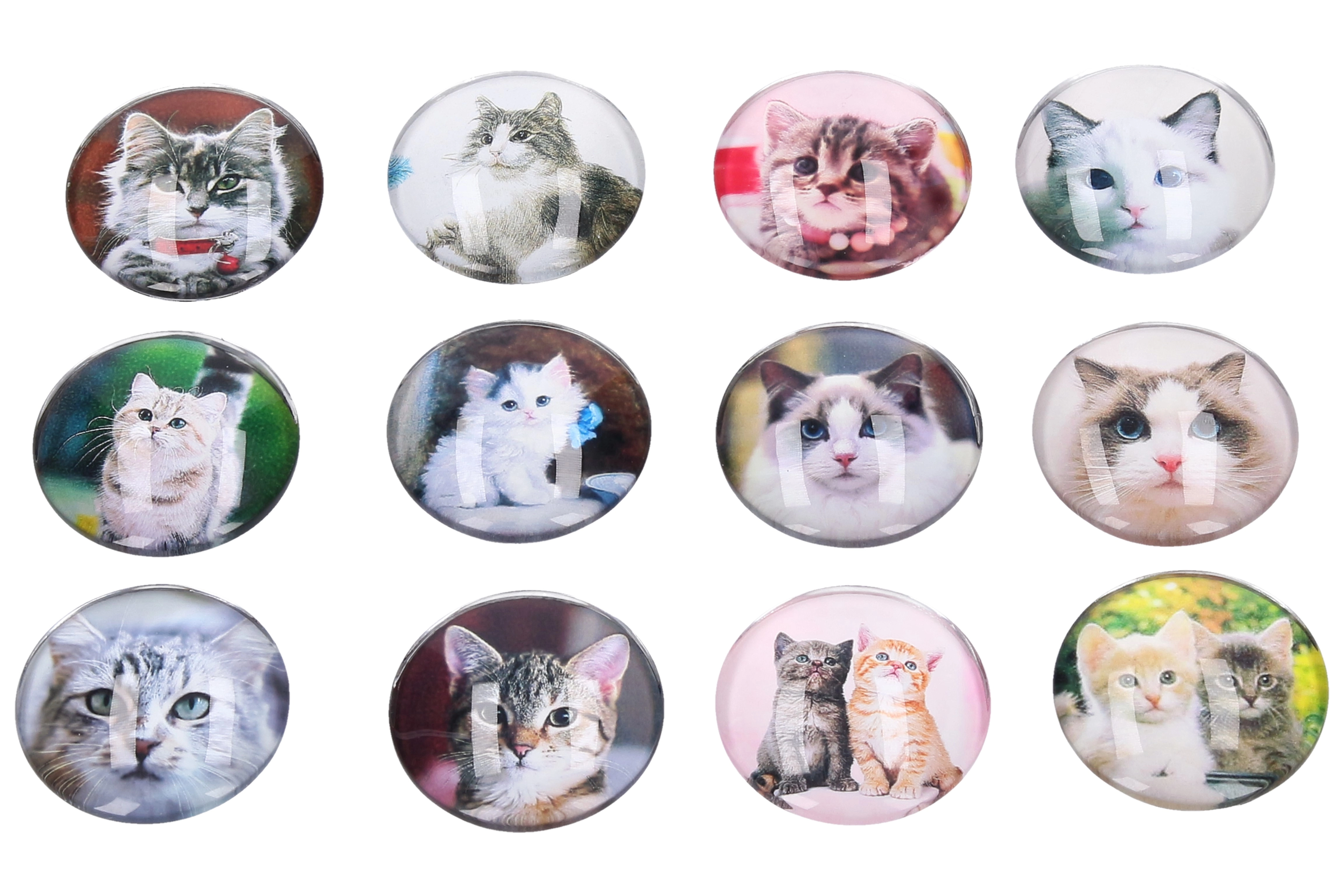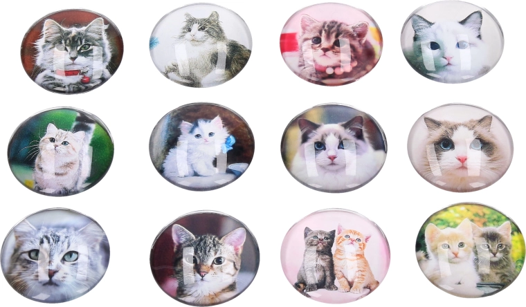 Oživte domov nebo kancelář stylovým doplňkem. Tento skleněný magnet s kočkou kombinuje líbivý design a spolehlivou funkčnost. Průměr 4 cm je ideální pro připnutí lístků, fotek či vzkazů na lednici, magnetickou tabuli nebo police z kovu. Každý kus je dodáván v mixu kočičích motivů, takže každý magnet je malý originál.
