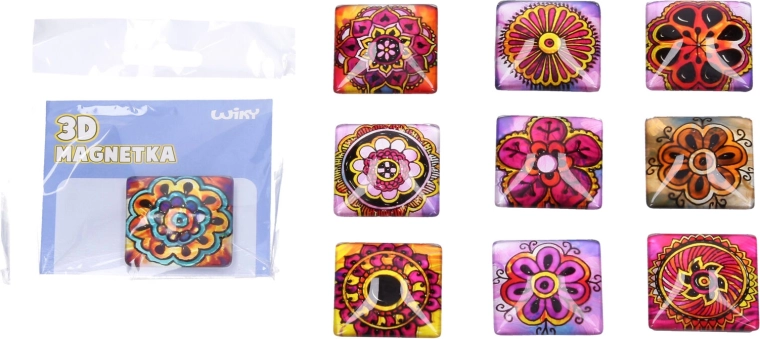 Stylový skleněný magnet s motivem mandaly o rozměru 4 × 4 cm skvěle oživí vaši lednici, tabuli nebo kancelář. Na výběr je 10 různých variant s výraznými barvami a precizními detaily. Odolné sklo zajišťuje dlouhou životnost a silný magnet spolehlivé uchycení poznámek, fotografií i vzkazů.