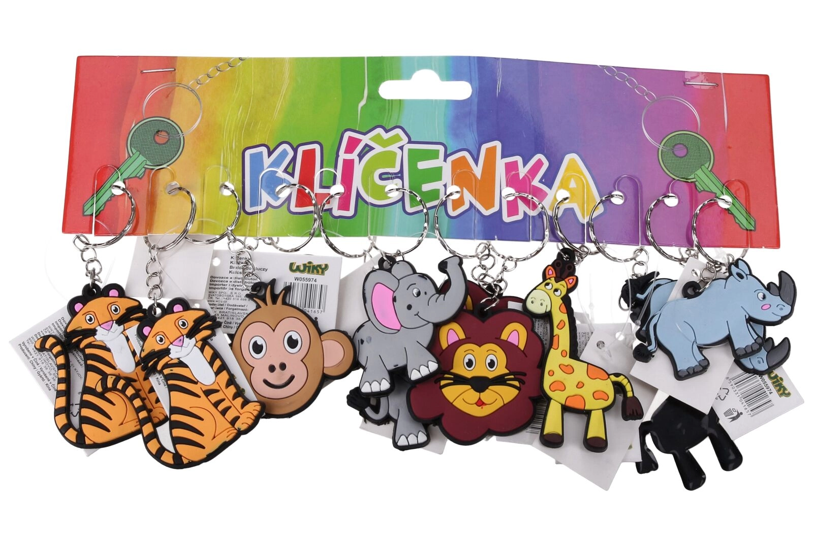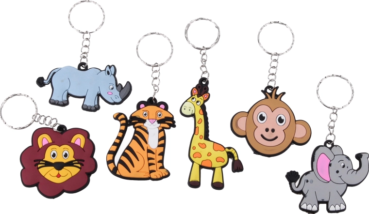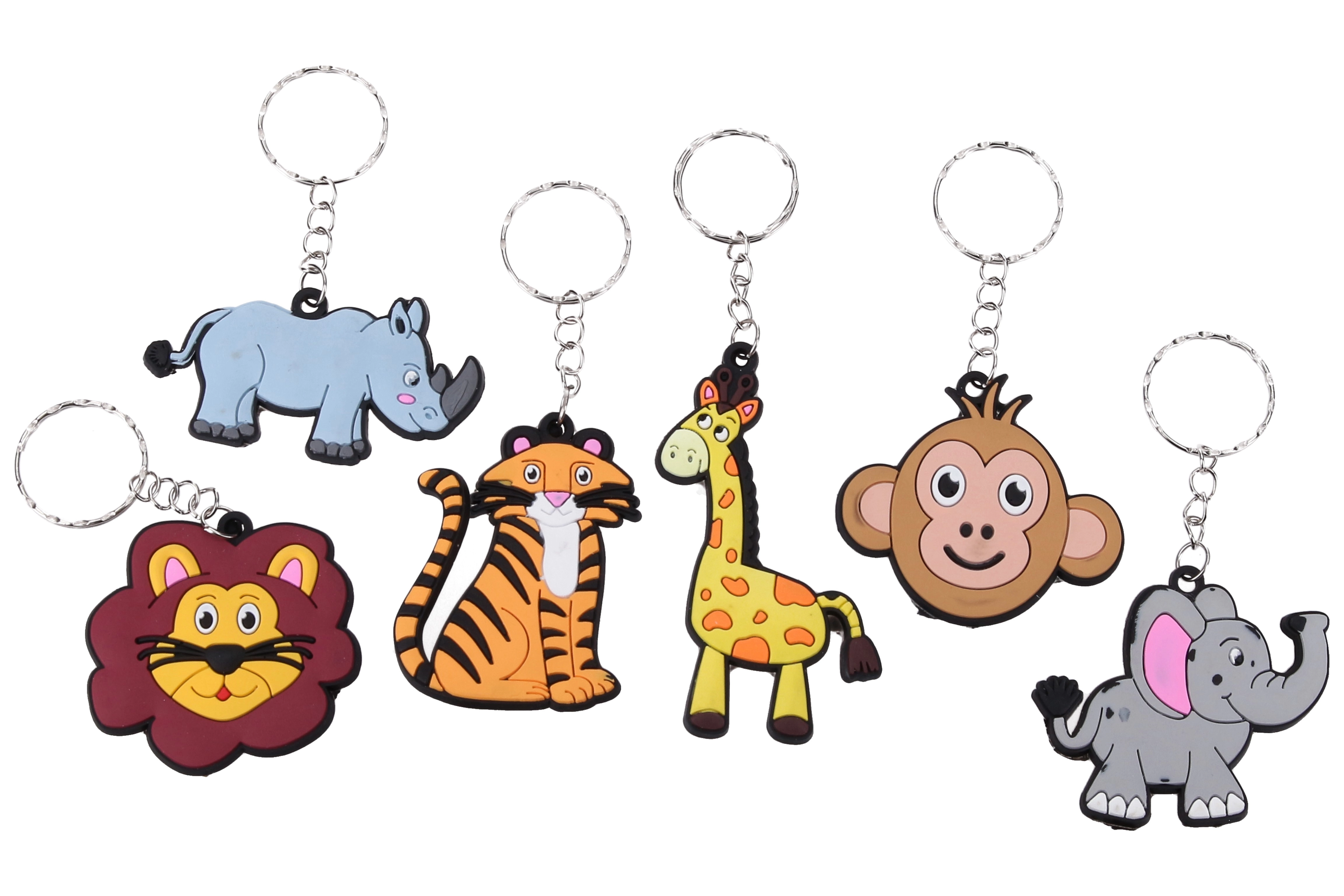 Roztomilá klíčenka se zvířátky v praktickém mixu motivů potěší děti i dospělé. Vyberte si z motivů tygr, opice, slon, lev, žirafa a nosorožec. Skvělé jako dárek, na klíče, batoh či penál. Balení obsahuje 12 ks na kartě.