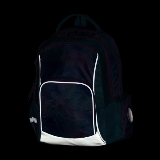 Chytré vnitřní členění se dvěma hlavními komorami, přední kapsou a bočními kapsami (otevřená a na zip) usnadňuje přehledné uložení učebnic, sešitů i svačiny. Nepromokavé pevné dno chrání obsah i proti ušpinění. Praktické háčky zkrátí dlouhé popruhy, reflexní prvky zvyšují viditelnost a bezpečnost při cestě do školy.