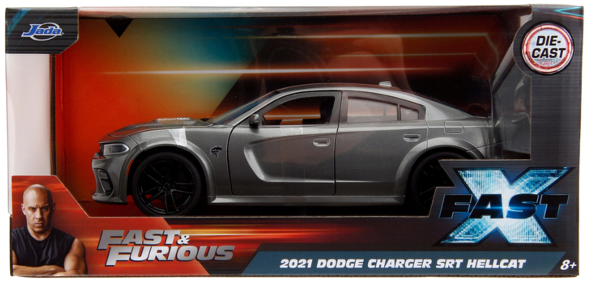 Užijte si adrenalin filmových honiček s modelem 2021 Dodge Charger SRT Hellcat inspirovaným slavnou sérií FAST & FURIOUS. Tento licencovaný model od Jada Toys v měřítku přibližné délky 19 cm zaujme celokovovou karoserií v elegantní stříbrné barvě a důrazem na filmovou autentičnost.