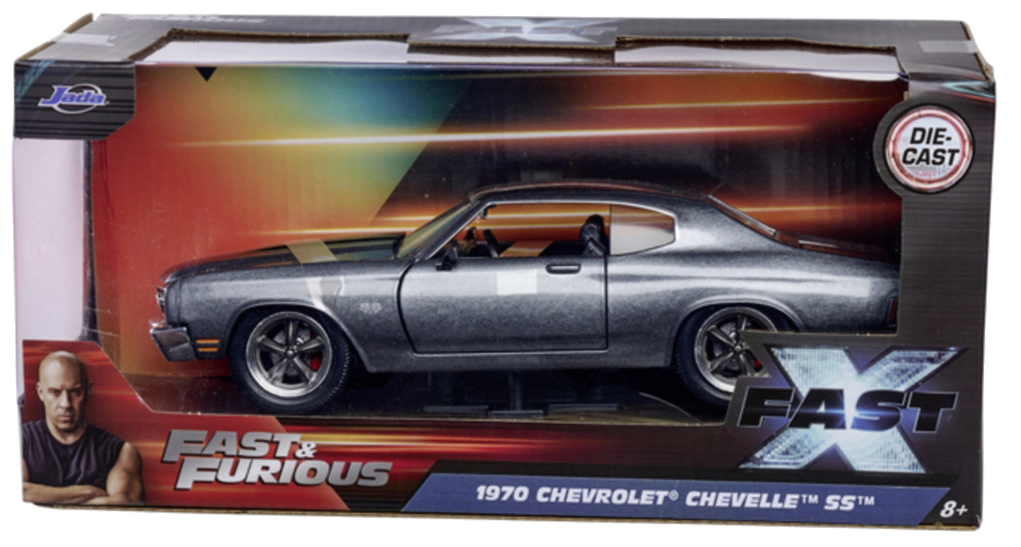Detailně zpracovaný sběratelský model od značky Jada Toys inspirovaný ságou FAST & FURIOUS. Nabízí kovovou karoserii, otevírací dveře a kufr a věrné proporce kultovního vozu 1970 Chevrolet Chevelle SS v délce 19 cm – ideální pro fanoušky filmů i jako stylová dekorace.
