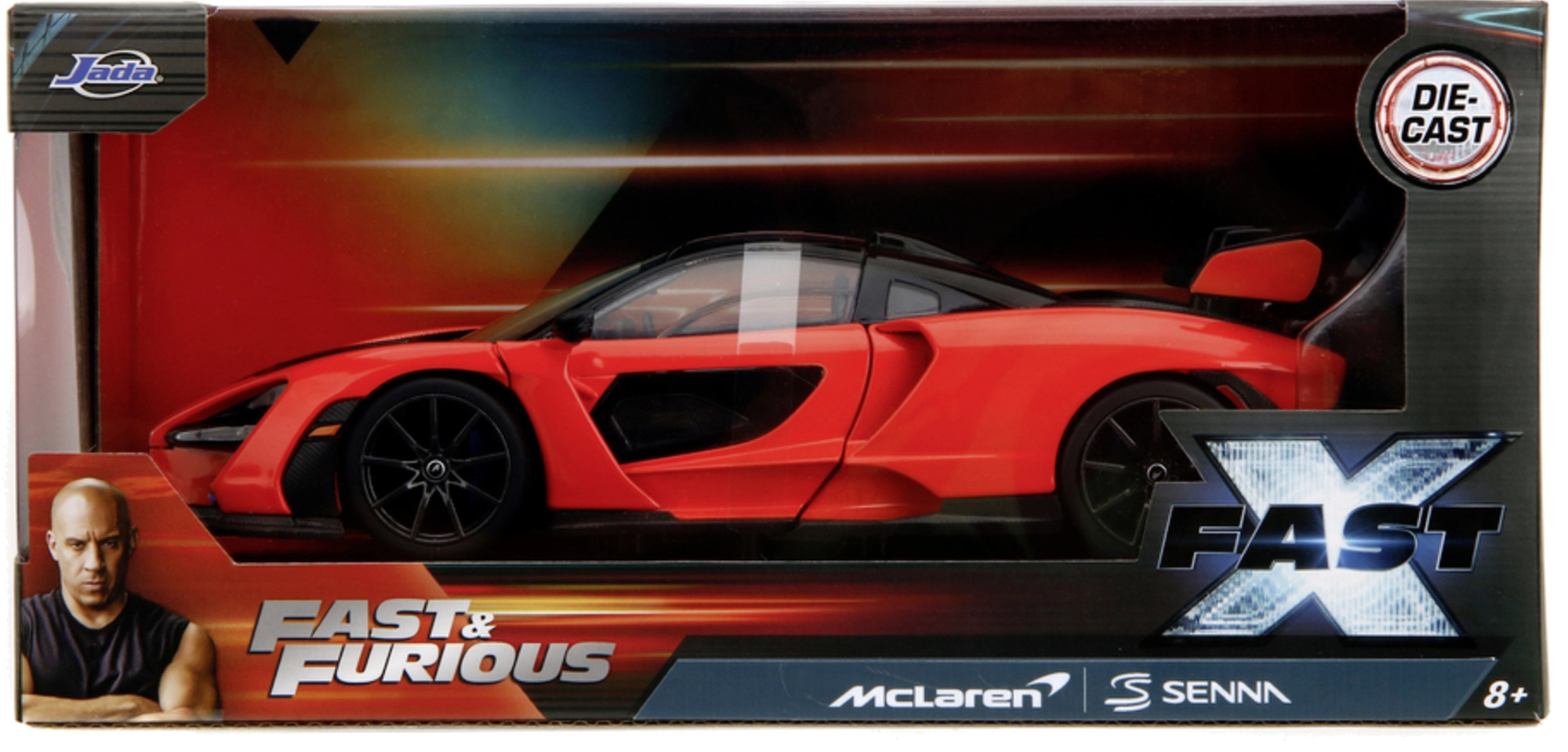 Ikonický model McLaren Senna z filmové série Rychle a zběsile (Fast & Furious) od značky Jada Toys potěší sběratele i děti. Nabízí kovovou karoserii, otevírací dveře a kapotu a precizní zpracování detailů v atraktivní červené barvě. Délka modelu je 19 cm – ideální pro hraní i vystavení.