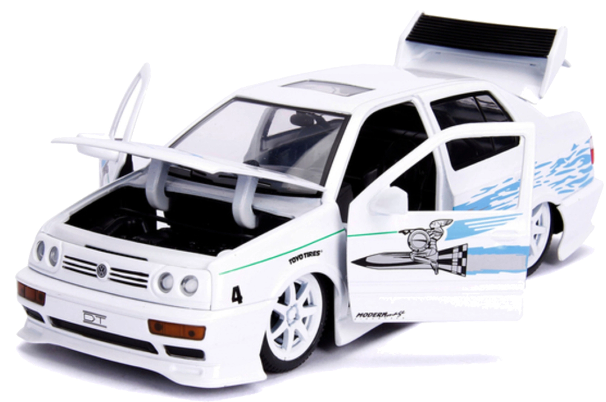 Tento detailně zpracovaný model Volkswagen Jetta z filmové série FAST & FURIOUS potěší každého milovníka rychlých aut a filmových klasik. Díky robustní kovové karoserii v bílé barvě a otevíratelným prvkům působí mimořádně realisticky a skvěle se vyjímá ve sbírce.