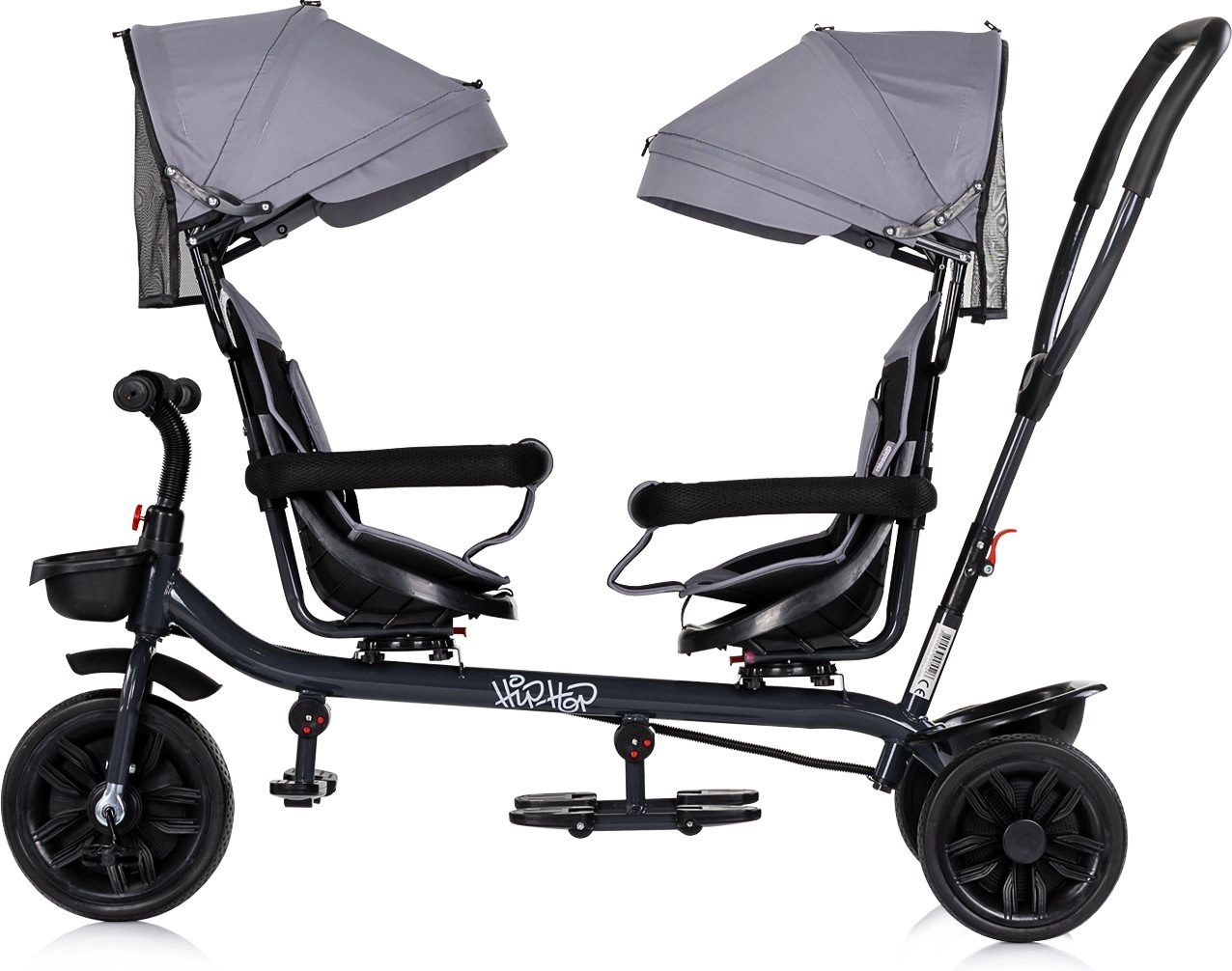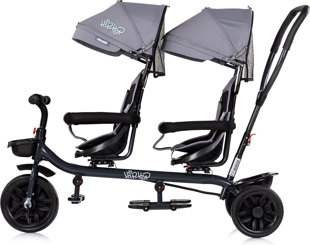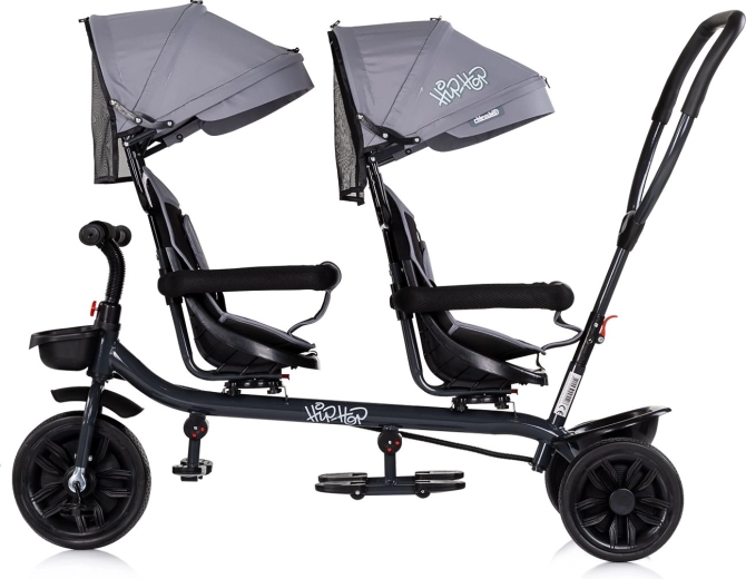 Objevte pohodlnou a bezpečnou jízdu pro dvě děti s tříkolkou pro dvojčata Chipolino Hip Hop Platinum. Nabízí multifunkční použití – rodič může pohodlně řídit a tlačit, nebo může přední dítě šlapat a řídit. Díky otočným sedadlům o 360°, širokým stříškám se sluneční clonou, bezpečnostním madlům a pásům poskytuje maximální komfort i ochranu na každé vyjížďce.