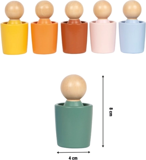- 6 dřevěných figurek a 6 barevných kalíšků