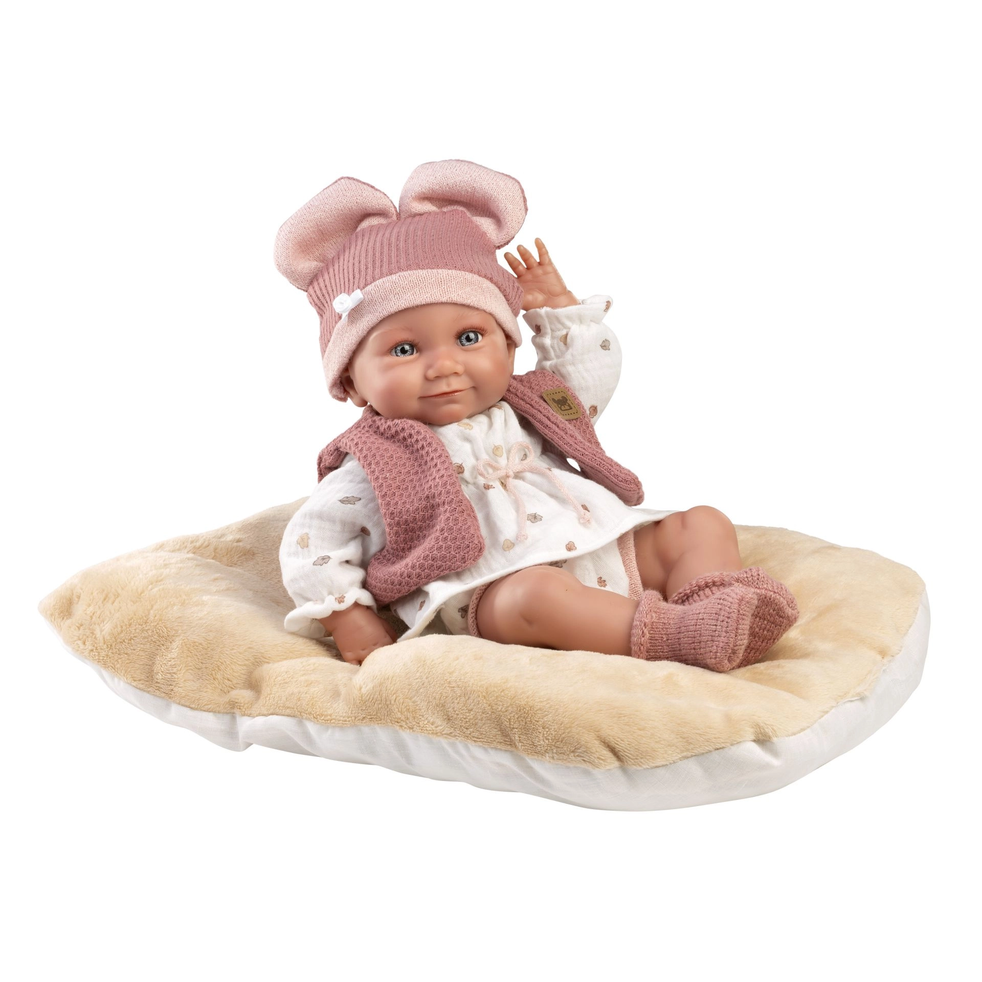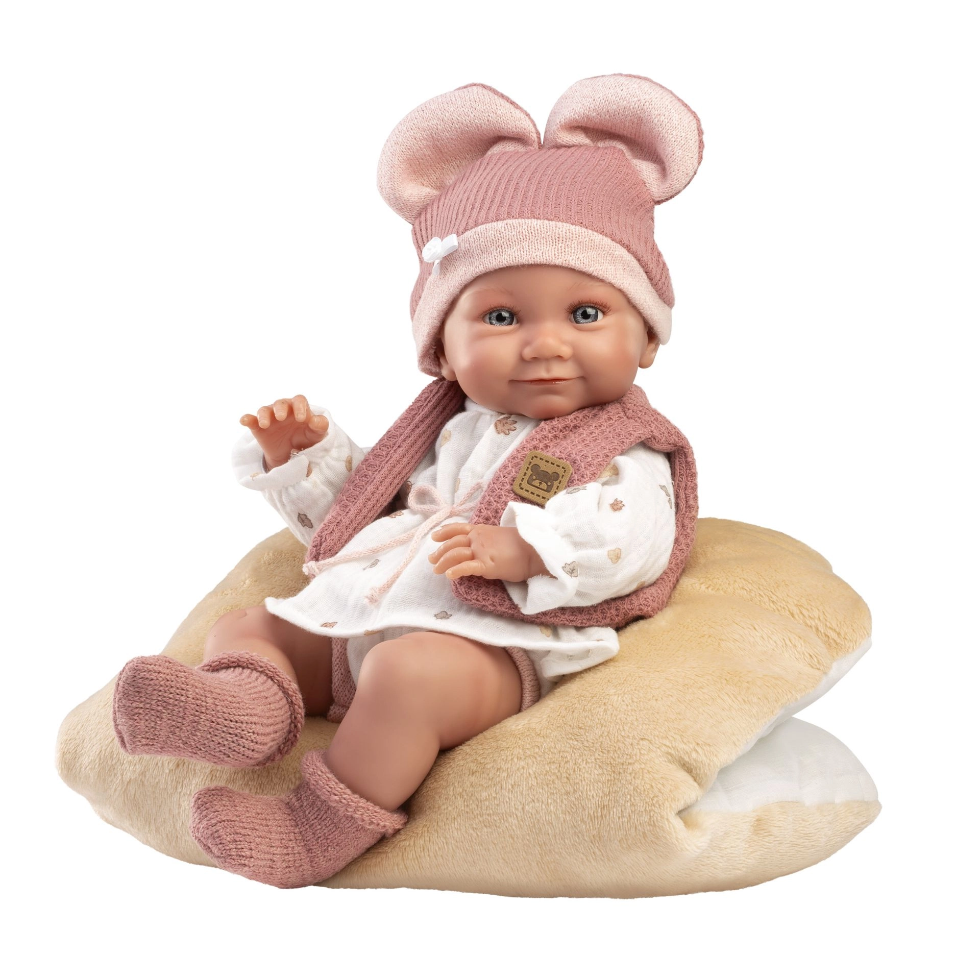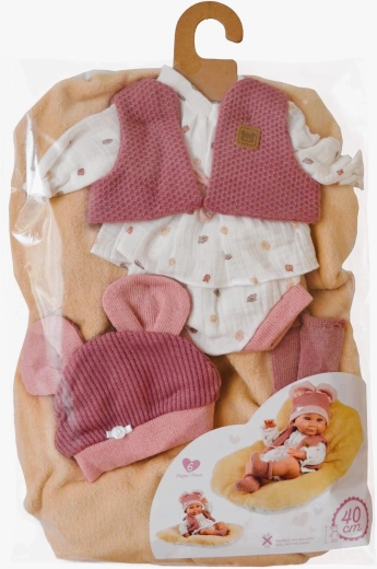 Stylový 5dílný set oblečků pro panenku NEW BORN o velikosti 40–42 cm potěší každou malou maminku. Obsahuje 4 kusy oblečení a oboustranný polštář využitelný jako podložku. Ručně vyrobeno ve Španělsku, baleno v praktickém obalu s ramínkem. Ideální od 3 let.