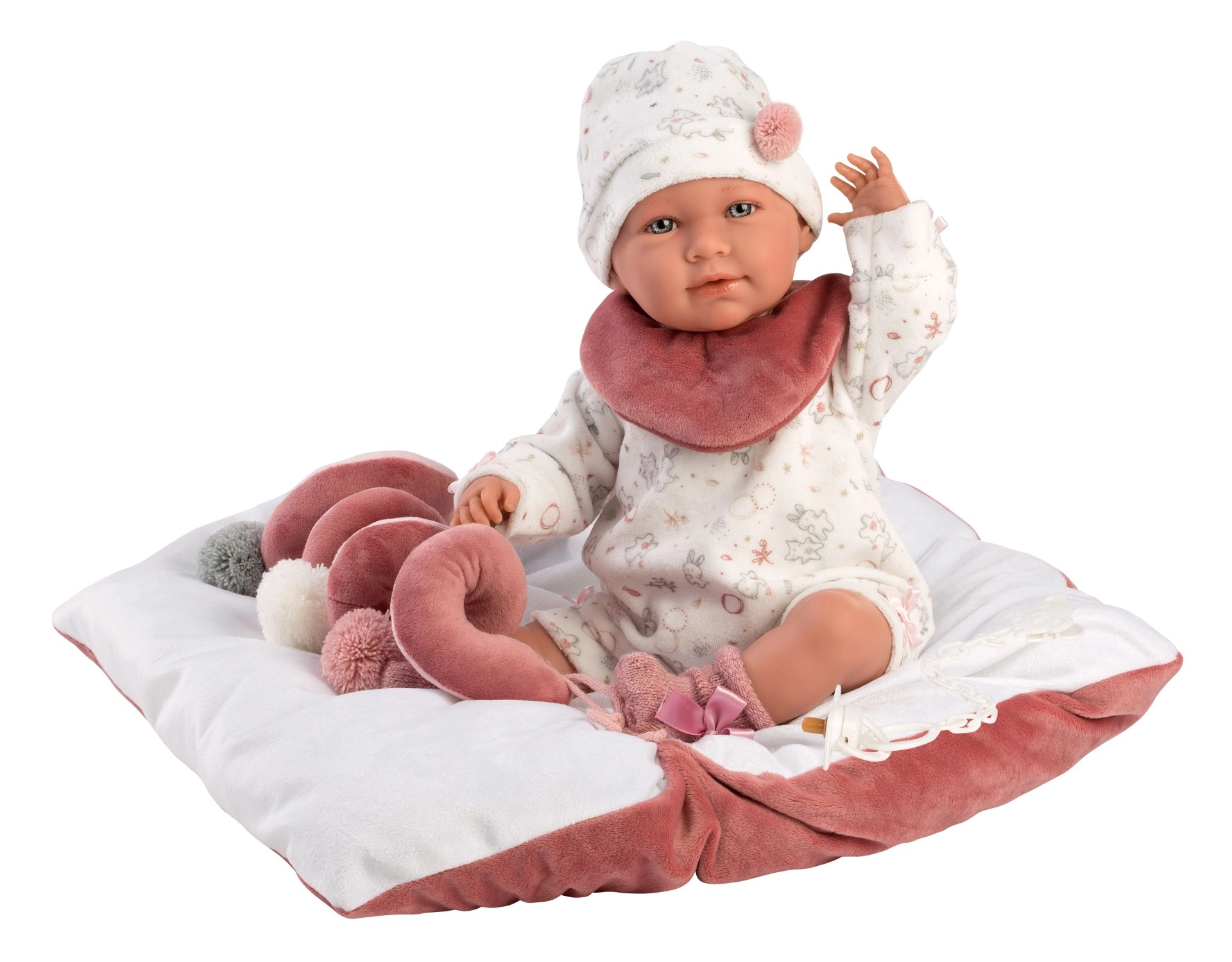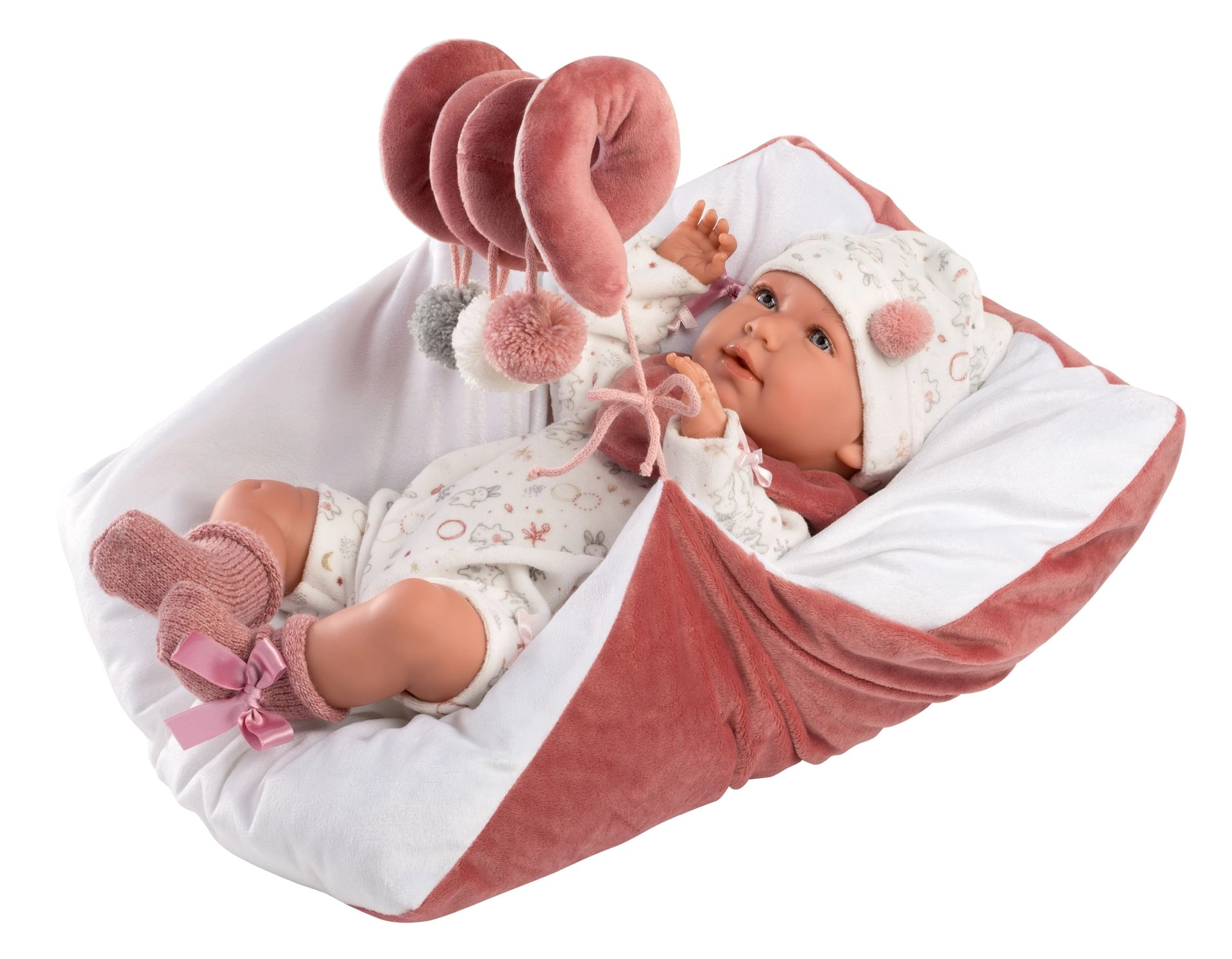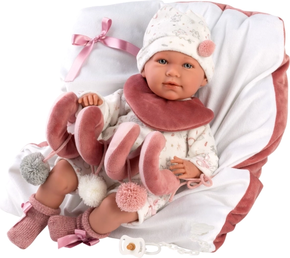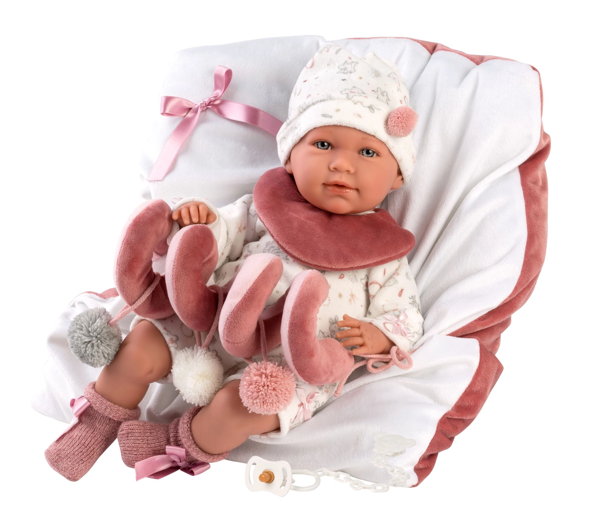 - Bohaté příslušenství: 2 díly oblečení, sametový bryndák, měkká podložka se spirálovou hračkou