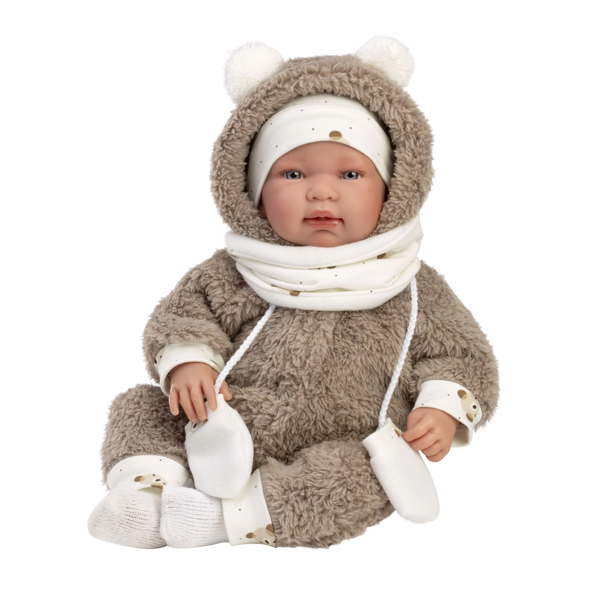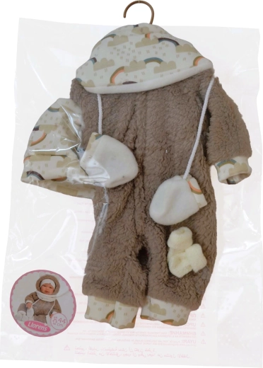 Každý kousek je pečlivě ručně vyroben ve Španělsku z kvalitních materiálů, které jsou příjemné na dotek a dobře drží tvar. Díky univerzální velikosti 43–45 cm oblečky pasují na většinu panenek této kategorie. Praktické balení v igelitovém obalu s ramínkem usnadňuje přenášení i skladování.