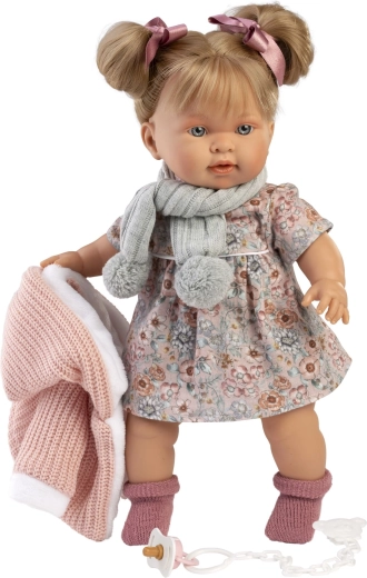 Dopřejte své panence stylový outfit, který skvěle sedí na panenky o velikosti 42 cm. Tento promyšlený 5dílný set kombinuje teplé pletené kousky a něžné květinové vzory, takže je ideální jak na hry „na doma“, tak na procházky kočárkem. Díky kvalitnímu ručnímu zpracování ze Španělska jsou jednotlivé části měkké, příjemné na dotek a odolné při častém převlékání.