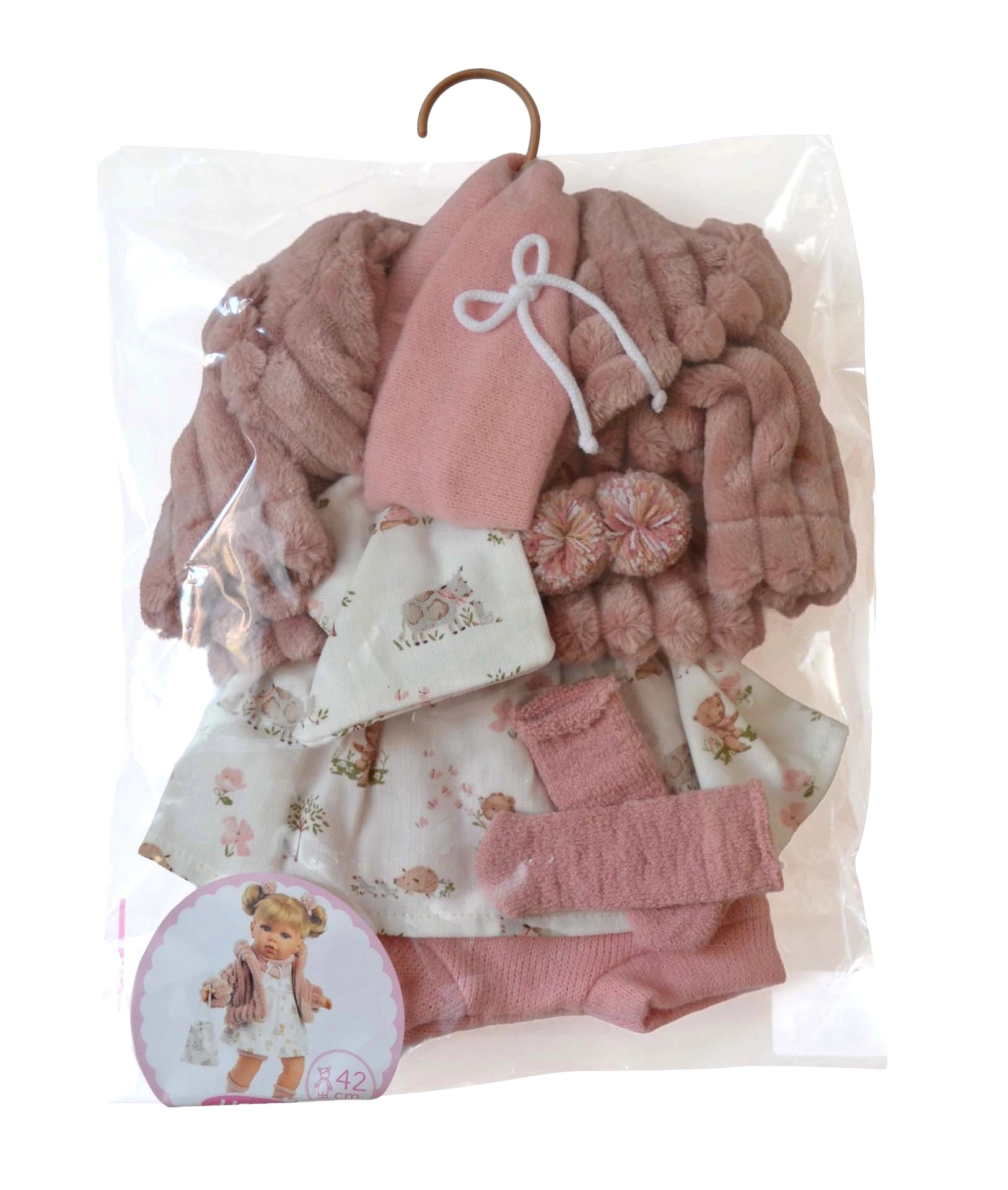 Oblečky jsou ručně vyráběny ve Španělsku s důrazem na detail, pohodlí a dlouhou životnost. Díky univerzálnímu střihu a kvalitním materiálům se snadno oblékají a svlékají, což podporuje jemnou motoriku i role-play dovednosti.