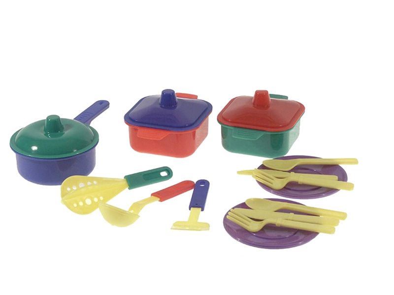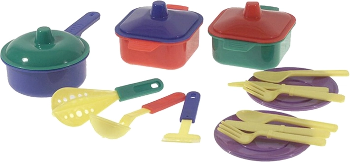 Ve výbavě najdete vše potřebné pro malou kuchyň: pánvičky, hrnec, talíře a příbory. Sada je vhodná pro dětské kuchyňky, hraní na vaření i společné hry se sourozenci a kamarády.