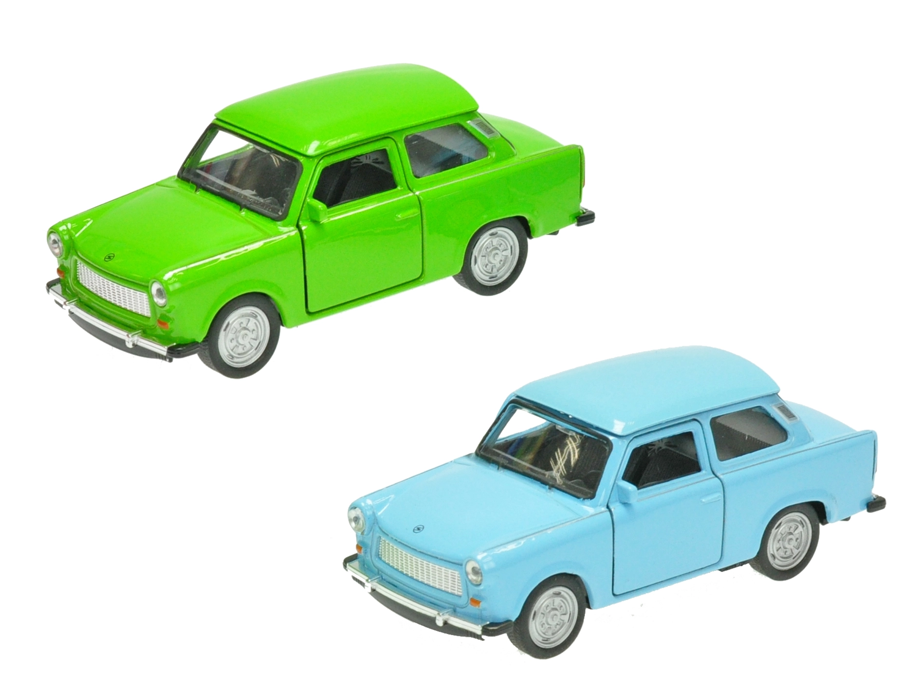 Detailní kovový model legendárního vozu TRABANT 601 od značky Welly v měřítku 1:36 potěší děti i sběratele. Nabízí otevírací dveře, zpětný natahovací (pull-back) mechanismus pro zábavnou jízdu a odolné provedení z kovu a plastu. Délka modelu je 11 cm a k dispozici je v modré, zelené a bílé barvě. Vhodné od 3 let.