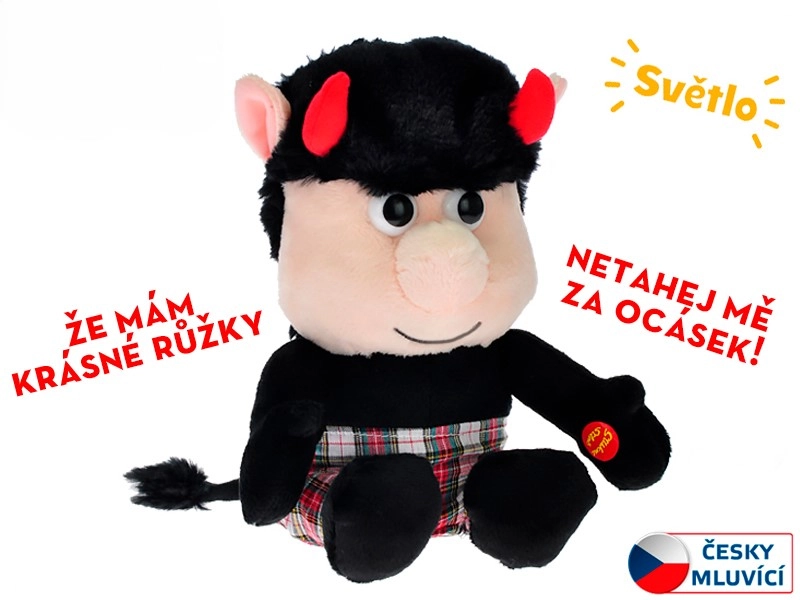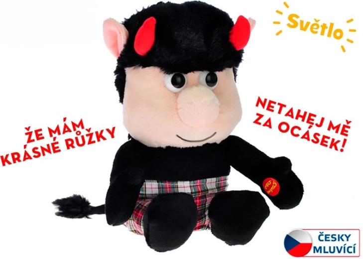 Přivítejte do dětského pokojíčku veselého společníka – čertíka jménem Rudla. Tato hebká plyšová hračka po stisknutí ručičky promlouvá česky a její růžky přitom zábavně blikají. Díky kompaktní velikosti 20 cm je skvělá na hraní doma i na cesty.