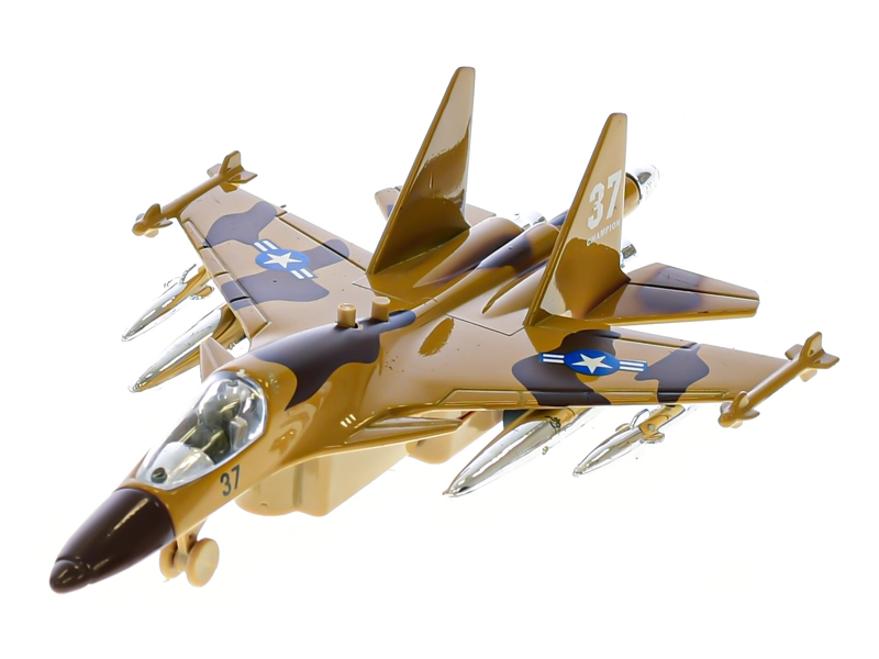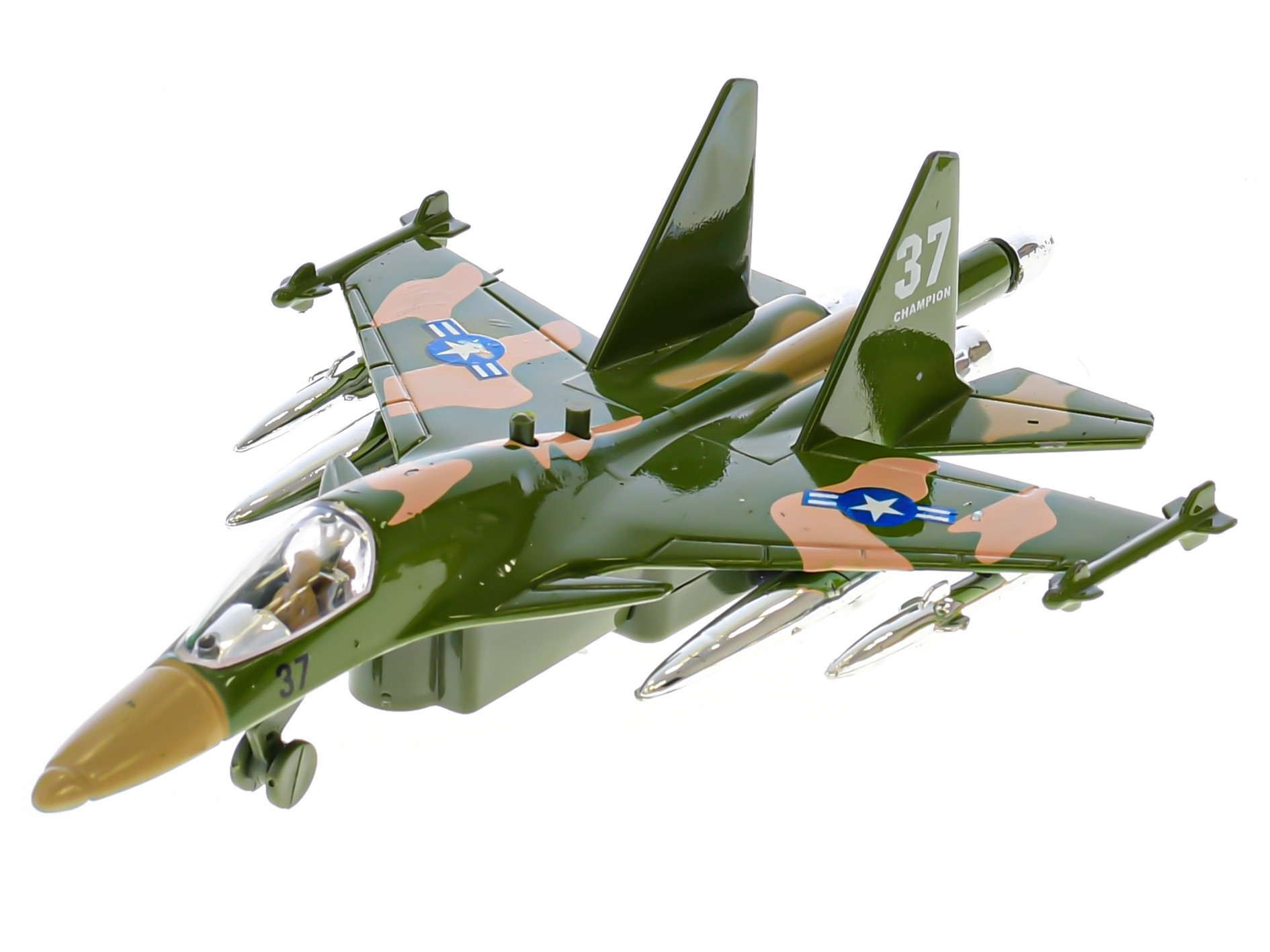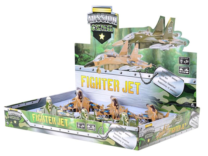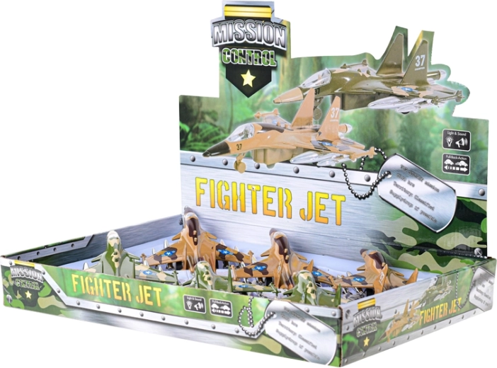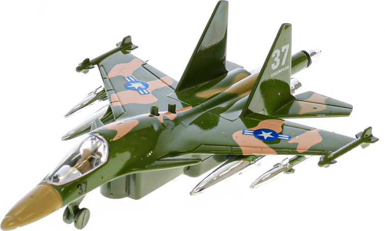 Toto detailně zpracované vojenské letadlo je ideální pro malé fanoušky letectví. Stačí natáhnout, pustit a díky zpětnému pohybu se rozjede jako opravdový stroj. Po stisknutí tlačítka letadlo bliká a spouští zvuk startování, což umocňuje zážitek ze hry.