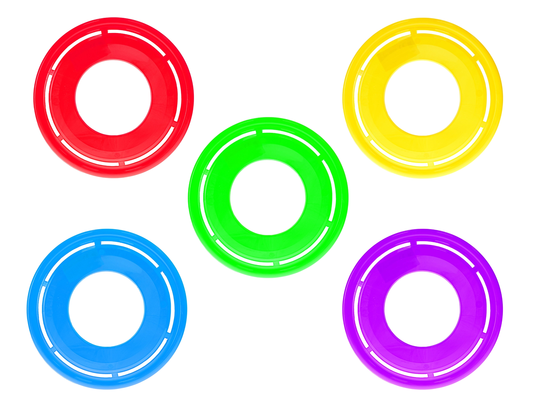Červená, modrá, zelená, růžová a žlutá – vyberte si oblíbenou barvu a snadno rozlište disky při společné hře.