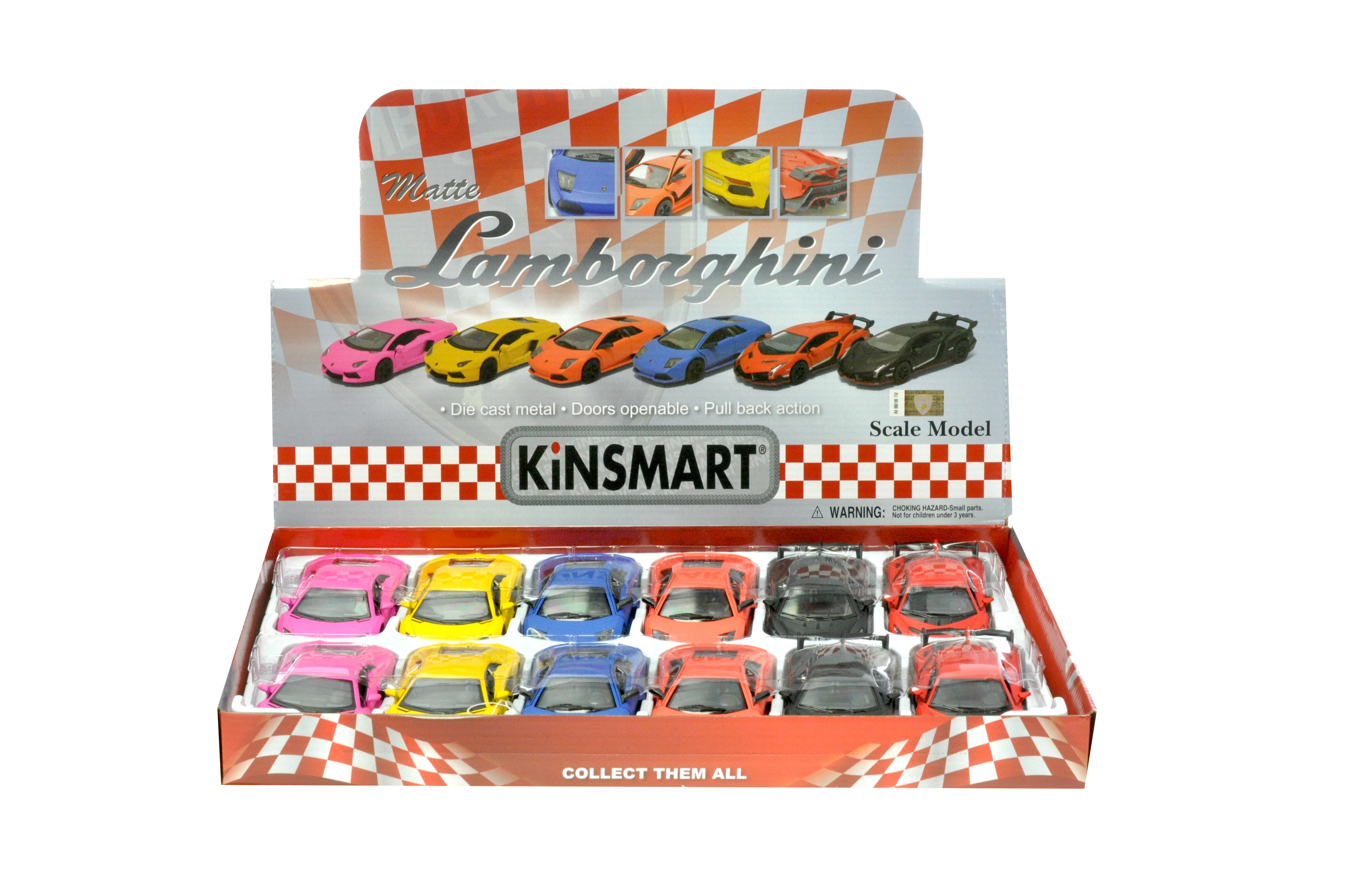 Objevte precizně zpracovaný model sportovního vozu Kinsmart LAMBORGHINI v měřítku 1:36, který potěší děti i sběratele. Kovové provedení s matným lakem, zpětný chod (pull-back) pro svižnou jízdu po natažení a otevírací dveře pro autentický zážitek z hraní. Ideální velikost pro hraní i vystavení, dostupný ve variantách AVENTADOR, VENENO a MURCIÉLAGO.