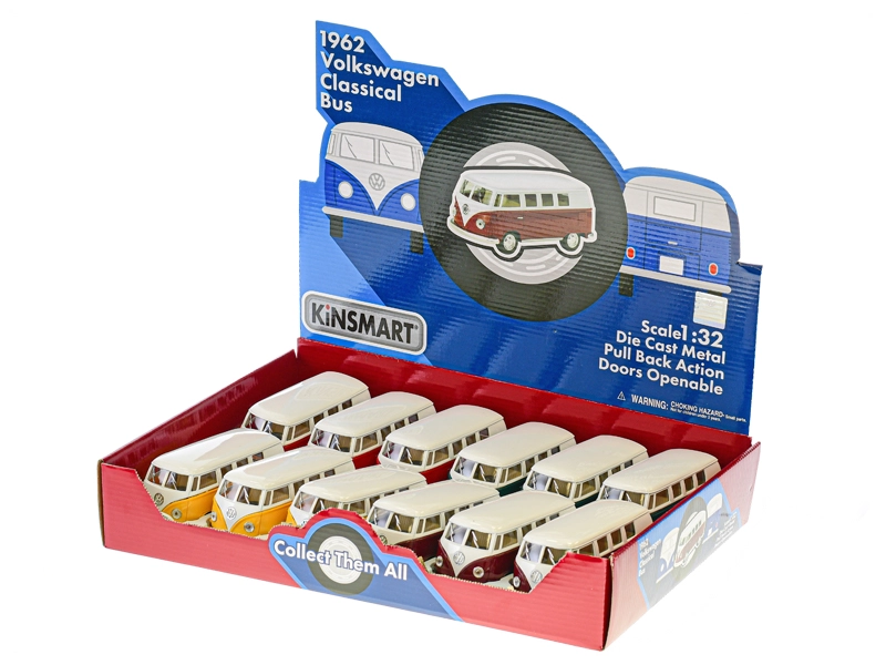 Precizní detaily karoserie, dvoudílné čelní okno a výrazné logo VW přinášejí věrný vzhled ikonického mikrobusu do vaší sbírky i dětské hry.