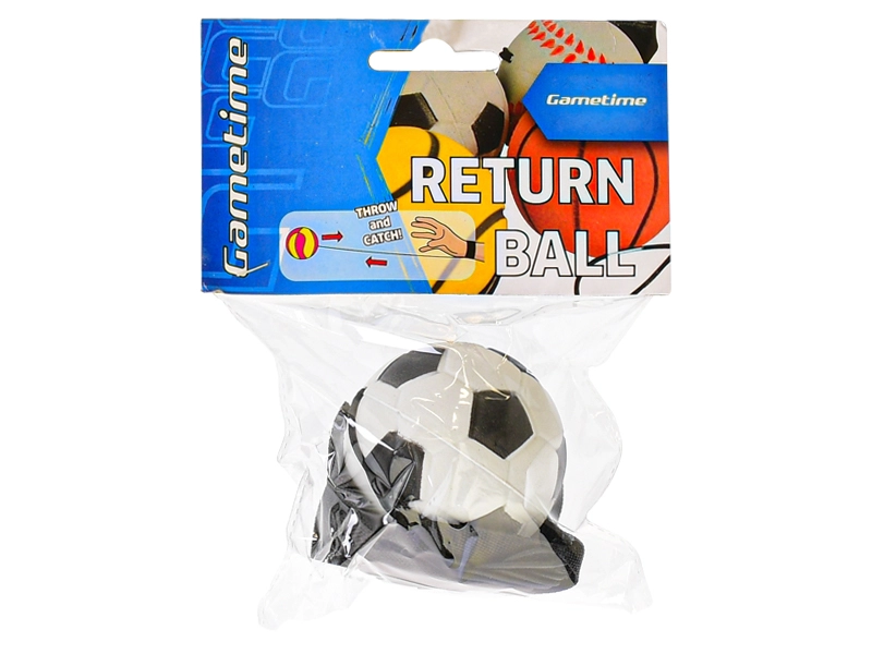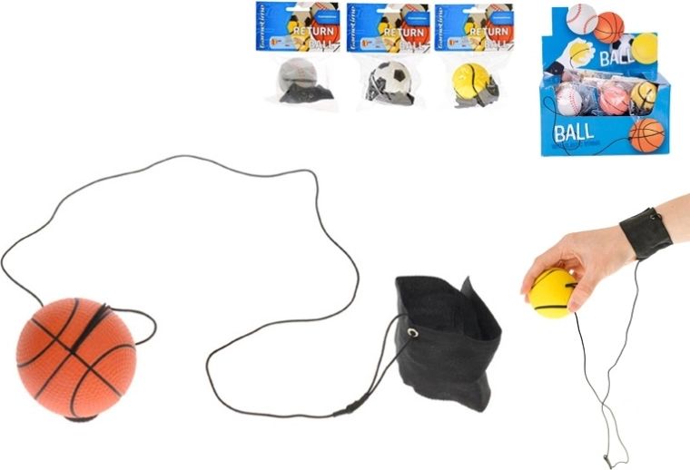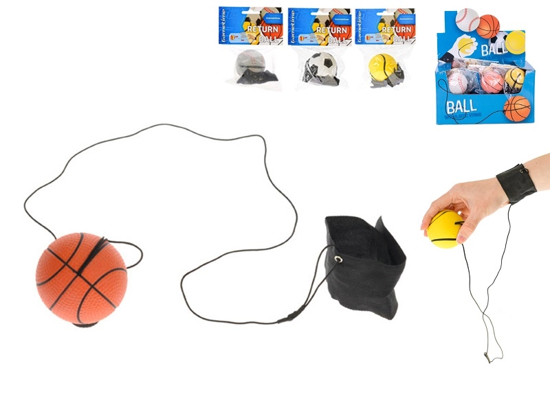 Zábavná hračka pro děti i dospělé: vracející se míček GAMETIME o průměru 60 mm je připevněný na elastickém lanku se zápěstním páskem, takže se po hodu vždy vrátí. Skvělé pro trénink koordinace, reflexů a bezpečné sólo hraní bez ztrácení míčku. K dispozici v provedení tenis, fotbal, basketbal a baseball. Vhodné od 6 let.