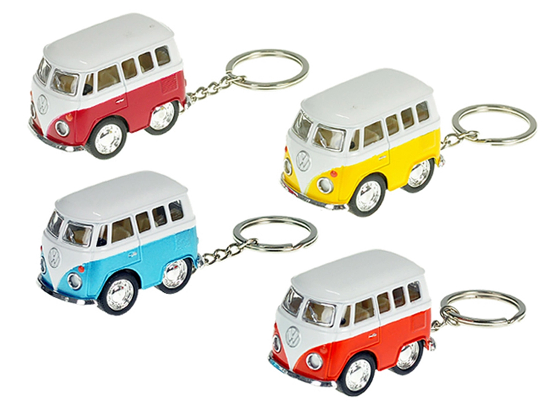 Stylový přívěsek na klíče ve tvaru ikonického Volkswagen mikrobusu potěší děti i dospělé. Detailně zpracovaný model o délce 5 cm kombinuje odolný kov a plast a díky zpětnému chodu se po natažení sám rozjede vpřed. K dispozici ve čtyřech barvách – červené, modré, žluté a oranžové.