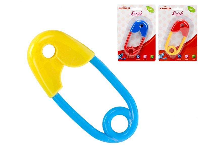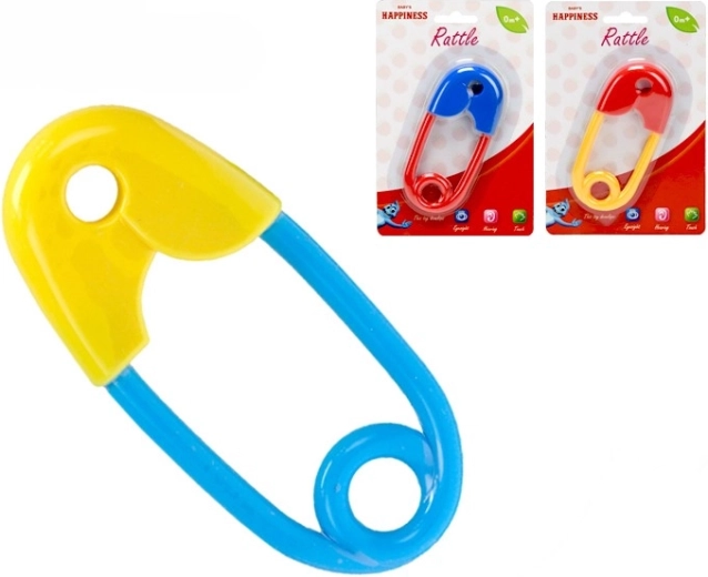 Oblíbené dětské chrastítko ve tvaru spínacího špendlíku potěší miminka od narození. Nabízí příjemný chrastivý zvuk, praktickou funkci kousátka pro zklidnění dásní a pohodlné držení pro malé ručičky. K dispozici ve 3 veselých barvách.