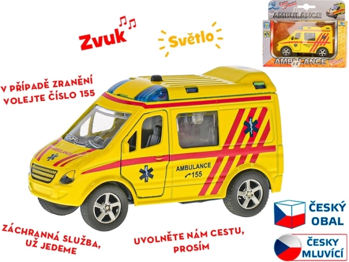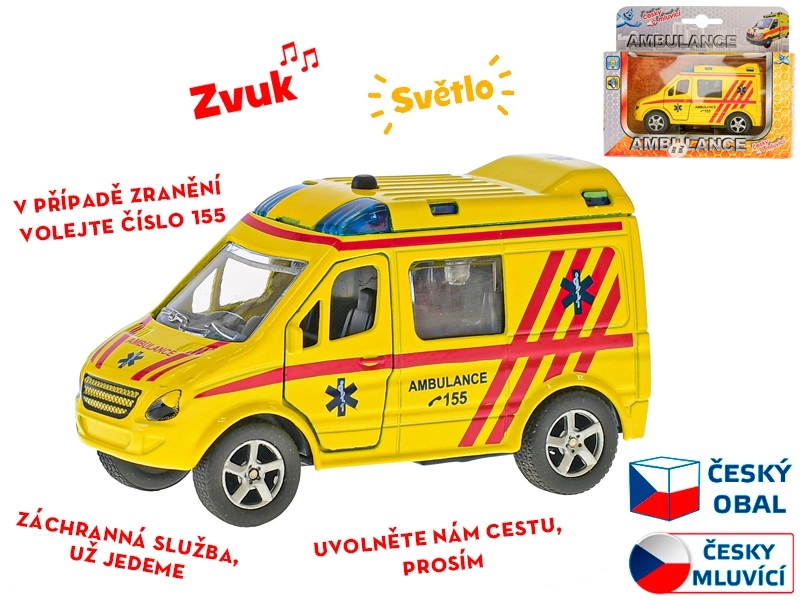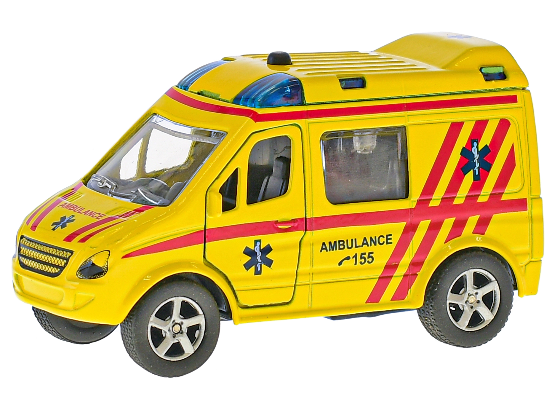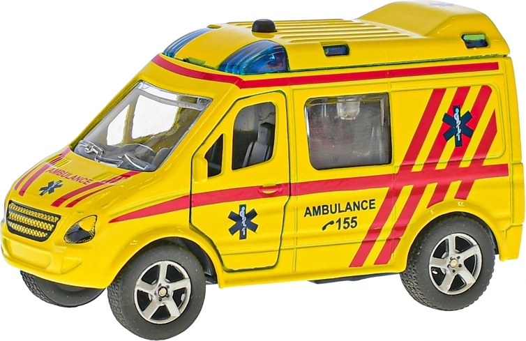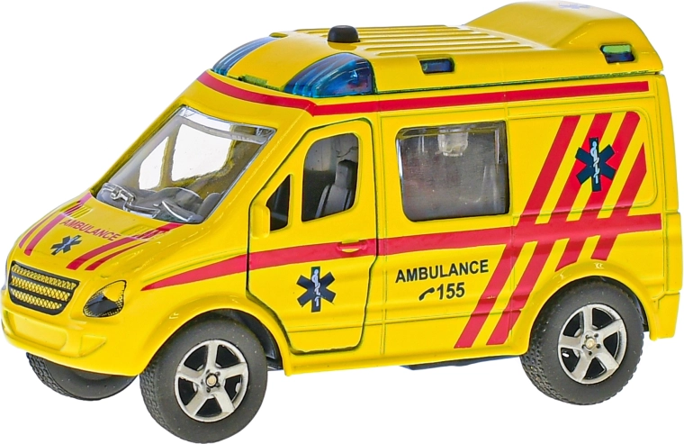 Na karoserii je výrazně uvedeno číslo tísňové linky 155, které pomáhá dětem zapamatovat si, kam volat v případě nouze. Kovové provedení zajišťuje vyšší odolnost a dlouhou životnost, takže se sanitka hodí jak na domácí hraní, tak do sbírek malých řidičů.