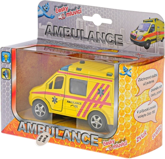 Kovová sanitka 2-Play Traffic o délce 11 cm se po natažení dozadu rozjede díky mechanismu zpětného chodu, doprovázená českým hlasovým hlášením a varovnými světelnými signály. Skvělá didaktická hračka, která zábavnou formou učí o záchranných složkách a připomíná důležité nouzové číslo 155.