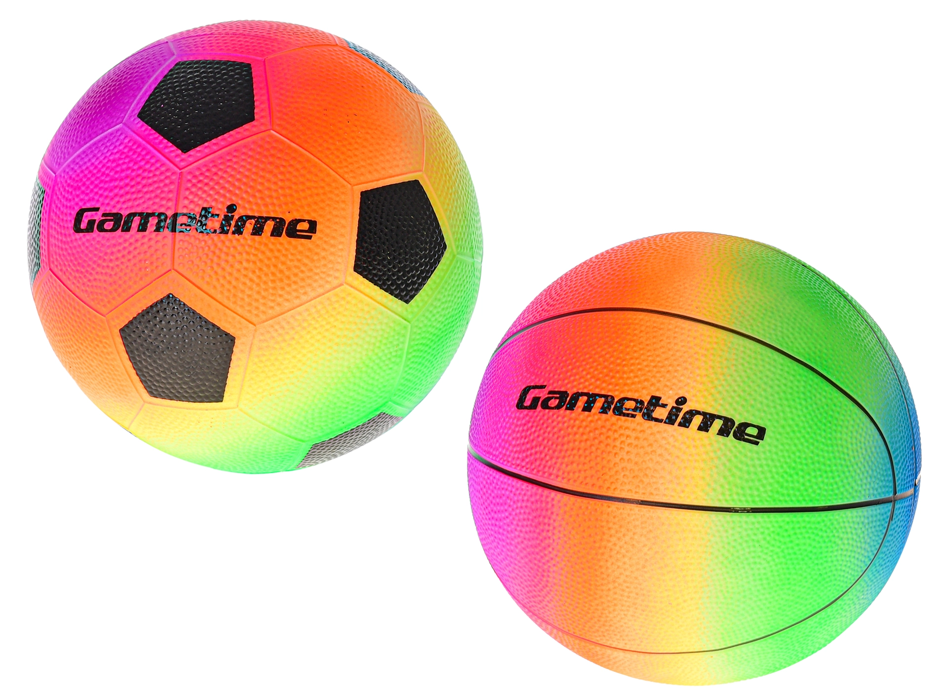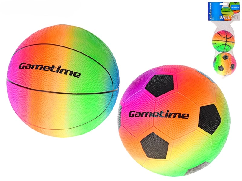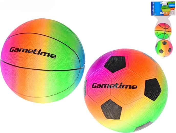 Získejte fotbalový i basketbalový míček v jednotném duhovém stylu – ideální pro rozmanitou a zábavnou hru kdekoliv.