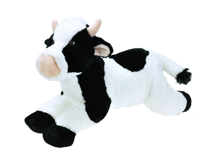 Roztomilá plyšová kravička v ležící poloze je vyrobena z měkoučkého a hebkého materiálu, ideálního na mazlení. Díky délce 40 cm se skvěle drží v náručí a je vhodná pro děti od narození (0m+). Bezpečné zpracování, příjemný dotyk a roztomilý vzhled z ní dělají perfektního společníka pro spánek i hraní.