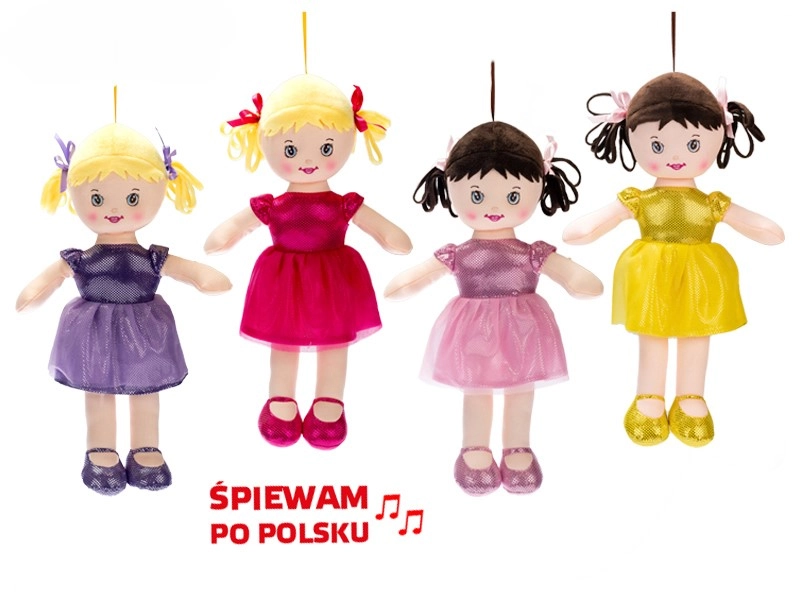 Roztomilá hadrová panenka Tosia o výšce 32 cm mluví a zpívá v polštině. Je vyrobena z měkkých a bezpečných materiálů, ideální pro miminka od narození. Díky funkci přehrávání frází a písní (včetně „Mam chusteczkę haftowaną“) podporuje rozvoj jazyka a hudebního cítění. Dostupná ve 4 barevných variantách a balená v praktickém sáčku.