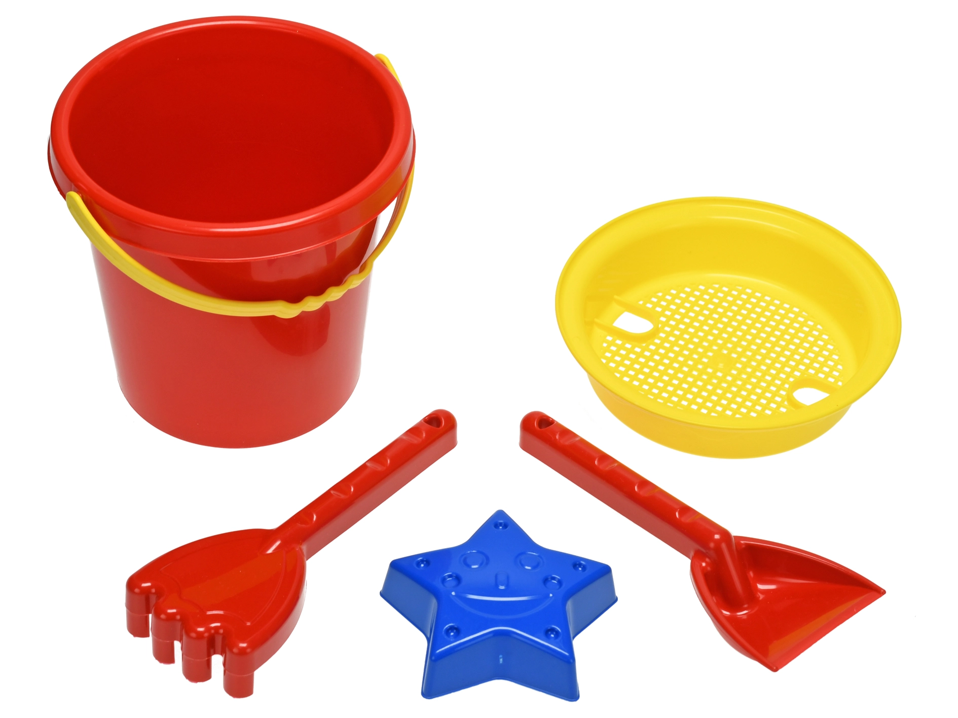 - Kbelík 17 cm, sítko, lopatka, hrabičky, bábovička