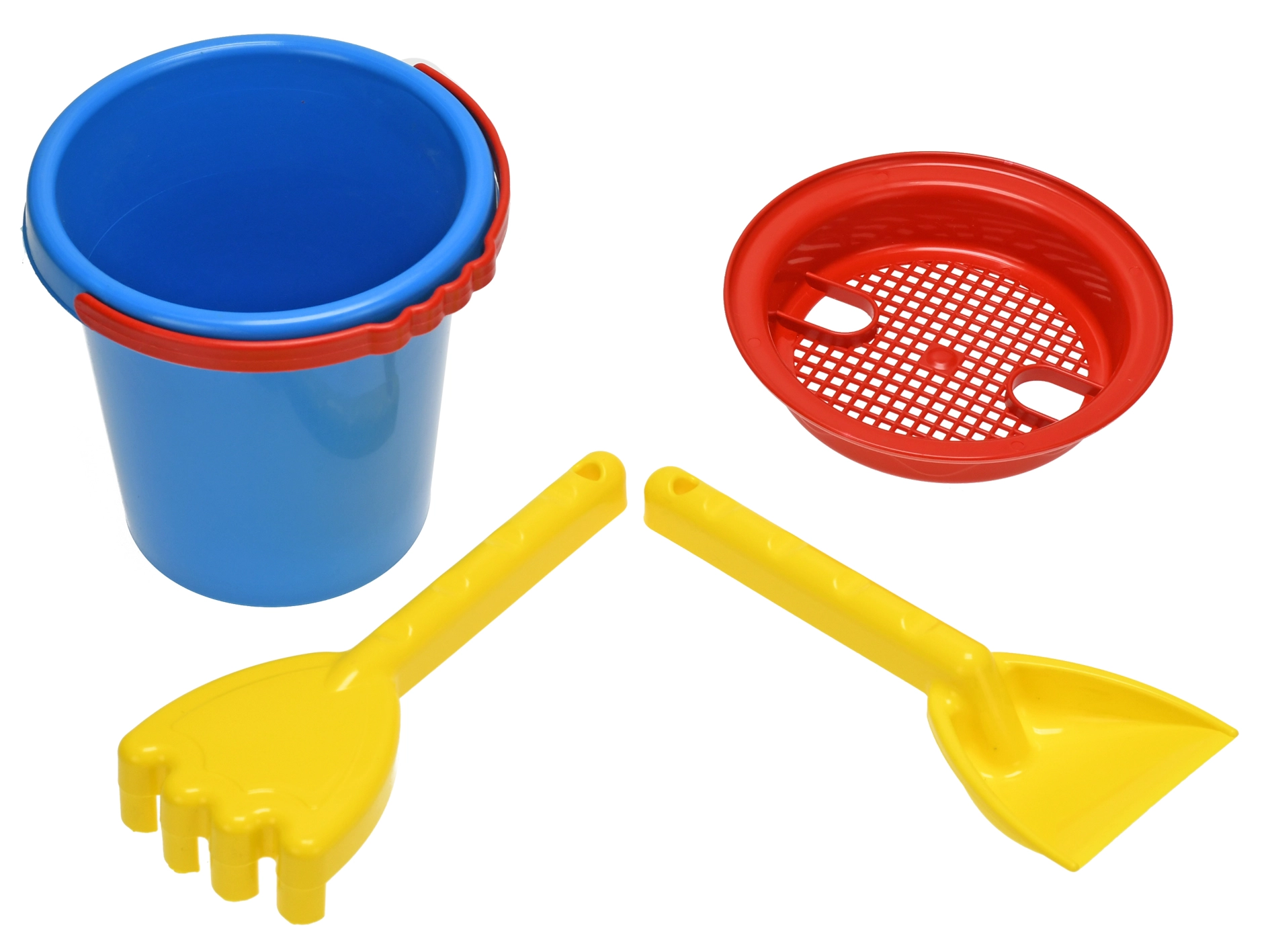 - Kompletní výbava: kbelík, sítko, lopatka a hrabičky