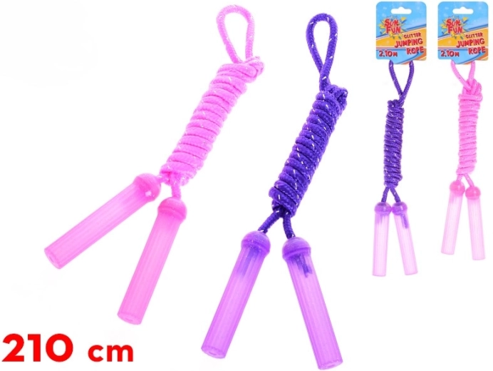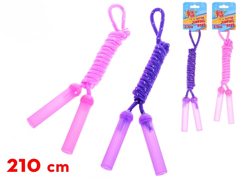 Užijte si spoustu pohybu a zábavy se švihadlem z kolekce Sun Fun. Lehká plastová madla a odolné třpytivé lano o délce 210 cm jsou ideální pro koordinaci, kardio trénink i hravé učení triků. K dispozici ve 2 barvách – růžová a fialová, vhodné pro děti od 4 let.