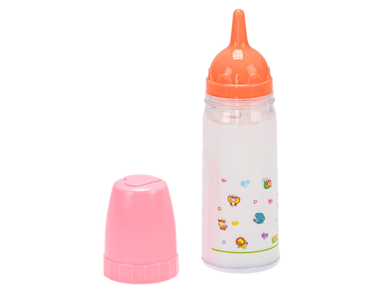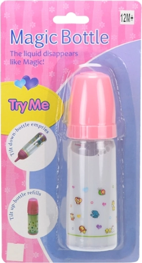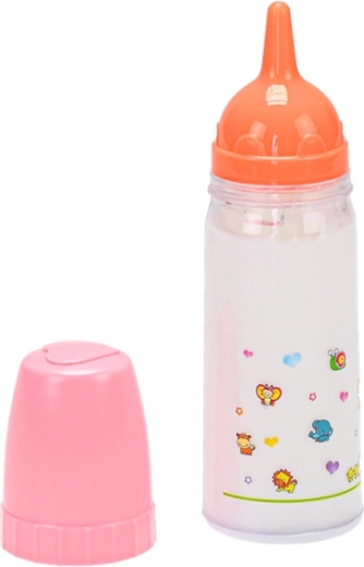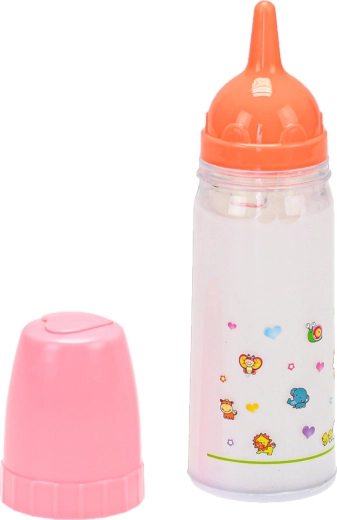 Realistická dětská lahvička na mléko pro panenky o délce 15 cm s tekutinou, která při naklonění „mizí“ a po narovnání se vrací zpět. Odolný plastový materiál, snadné držení i pro nejmenší a skvělá pomůcka pro rozvoj fantazie a sociálních dovedností.