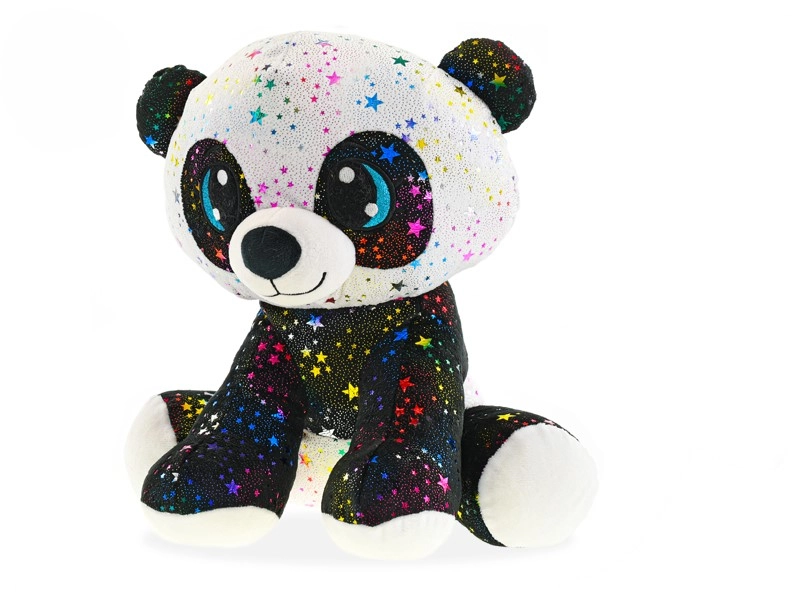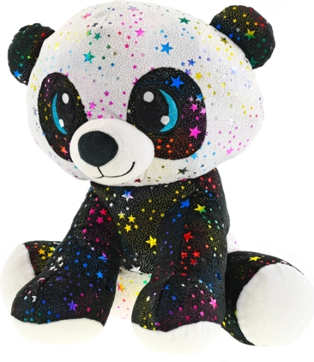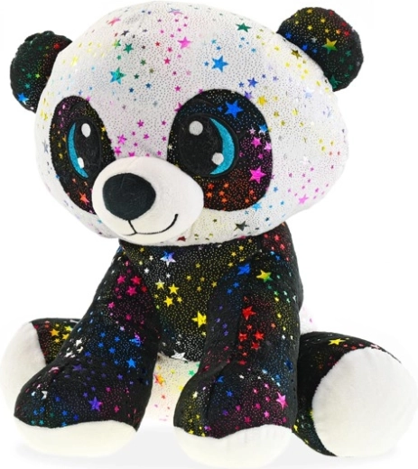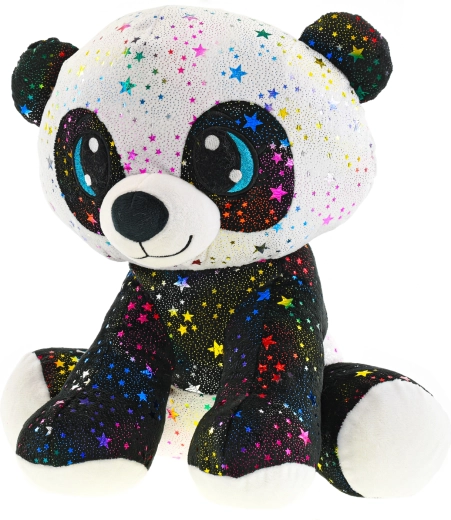 Celé tělíčko zdobí barevné hvězdičky a jemný třpyt, který upoutá pozornost a dodá pandě jedinečný vzhled.