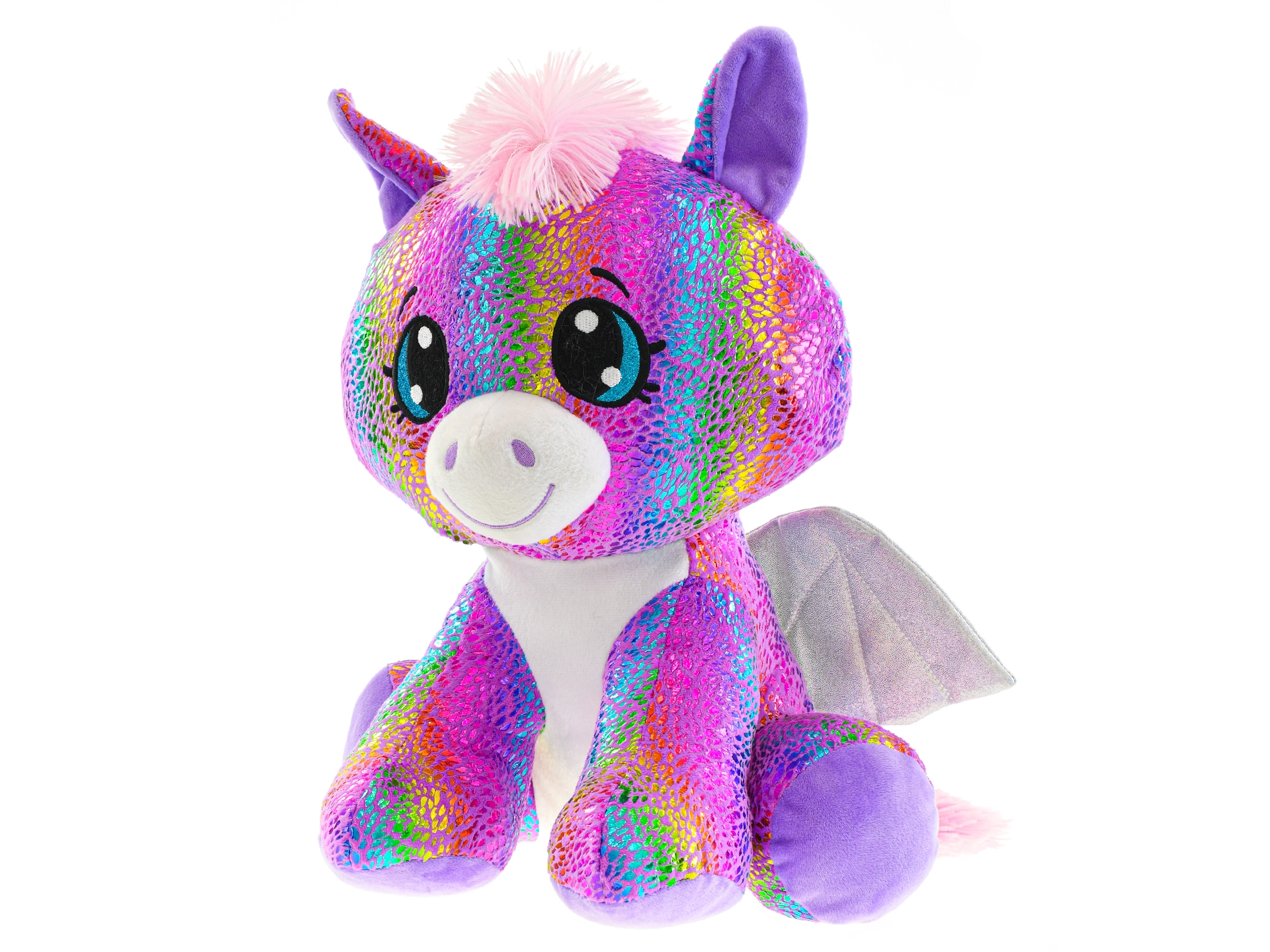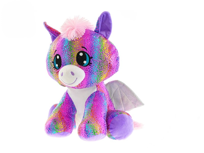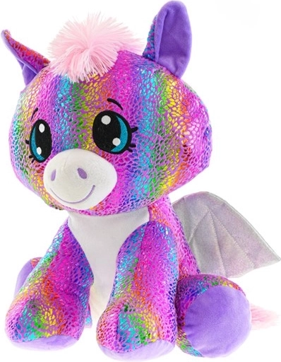 Tento barevný pegas přináší dětem kouzlo fantazie a jemné pohlazení v jednom. Je vyroben z hebkého plyše se třpytivými hvězdičkami a duhovými efekty, které zaujmou každé malé milovníky kouzelných tvorů. Sedící tvar zajišťuje stabilitu a snadné vystavení na poličce či nočním stolku.