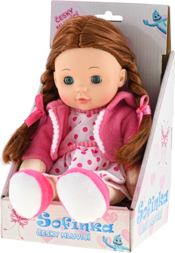 Roztomilá panenka Sofinka s výškou 31 cm, měkkým textilním tělíčkem a hnědými vlásky potěší každou malou maminku. Díky mrkacím očím a funkci mluvení v češtině nabízí interaktivní hru, která podporuje jazykové a sociální dovednosti. Baterie jsou součástí balení, takže je připravena k hraní ihned po vybalení.
