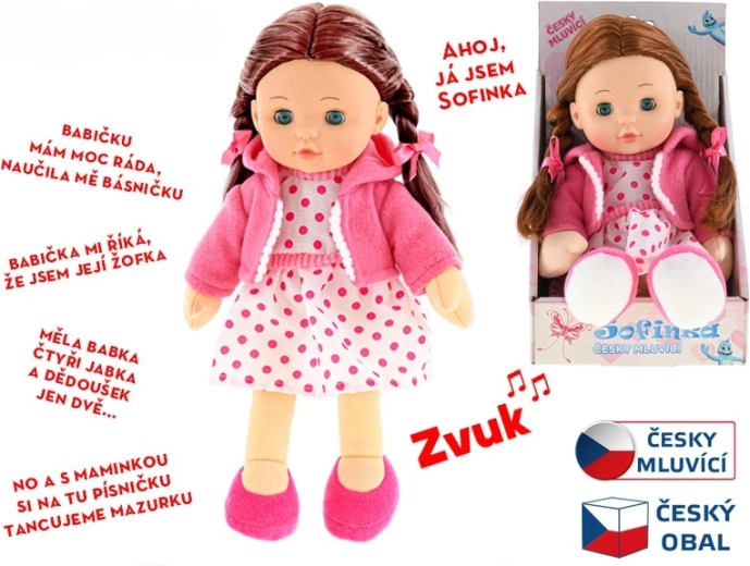 Panenka Sofinka je ideálním společníkem pro děti od 3 let. Její měkké tělíčko je příjemné na dotek a vybízí k mazlení, zatímco realistický vzhled s hnědými vlásky a mrkacíma očima podněcuje dětskou představivost. Sofinka navíc mluví česky, což zábavnou formou rozvíjí komunikaci a empatii.