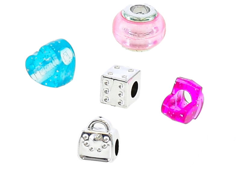 Korálky a přívěsky s velkým průvlekem umožňují dětem rychle měnit vzhled náramku a tvořit originální kombinace bez pomoci dospělých.