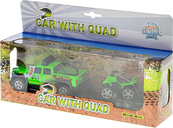 Součástí balení je vše, co děti potřebují k okamžitému hraní: auto, přívěs, čtyřkolka i baterie. Kompaktní balení usnadňuje skladování a přenášení, takže je set skvělý na doma i na cesty.