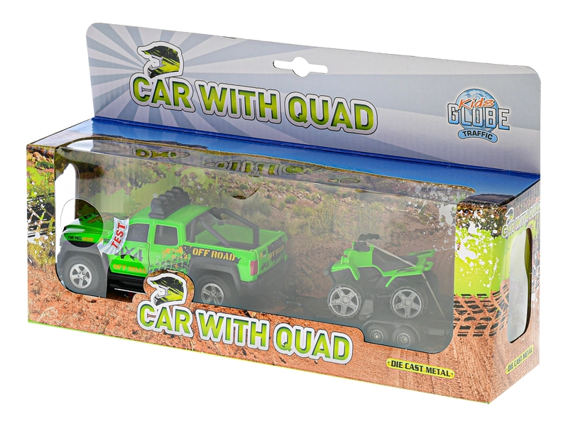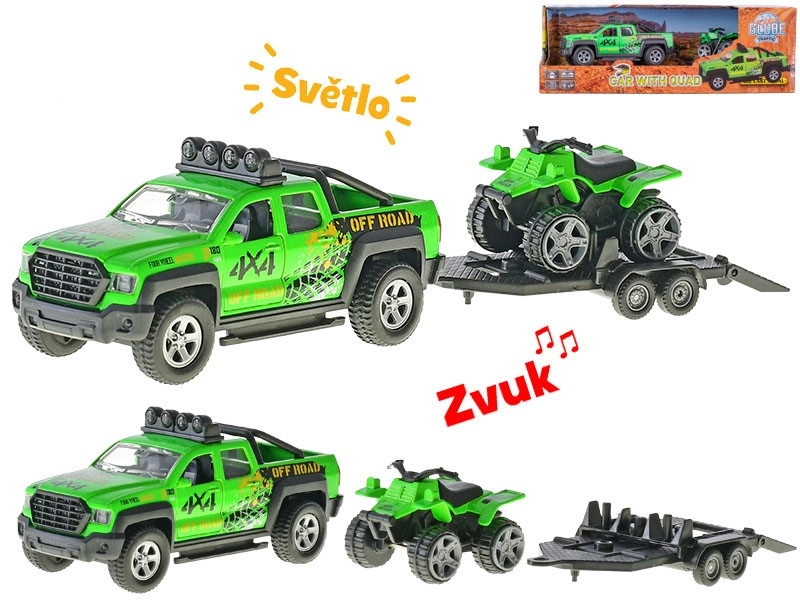 Tento detailně zpracovaný model terénního auta s přívěsem a čtyřkolkou přináší dětem autentický zážitek z jízdy. Kovové tělo vozu zajišťuje dlouhou životnost a odolnost, zatímco zpětný chod umožňuje přirozený a zábavný pohyb. Světelné a zvukové efekty dodávají hře skutečnou atmosféru.
