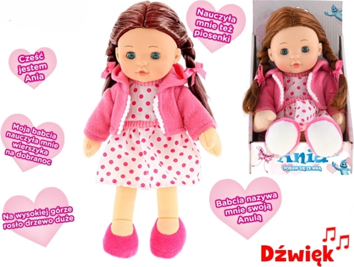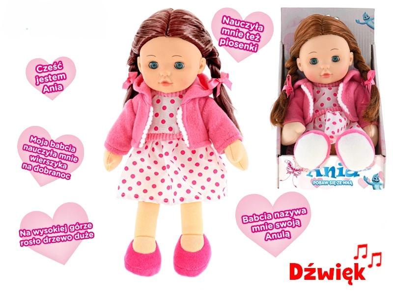 Roztomilá interaktivní panenka Ania potěší děti svým realistickým vzhledem a funkcemi. Má měkké tělíčko, mrkací oči a mluví polsky, čímž podporuje rozvoj jazykových dovedností a interaktivní hru. V balení najdete také baterie AG13, takže je připravena k použití ihned po vybalení.