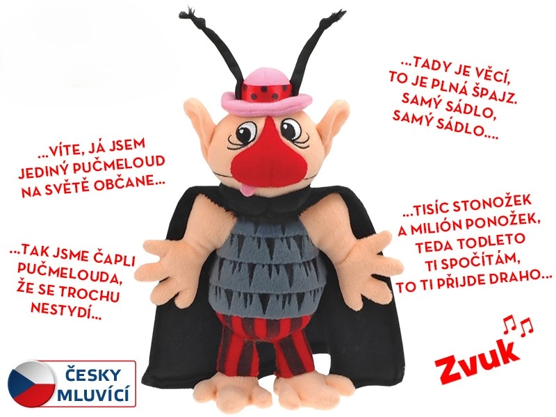 Hračka je česky mluvící a obsahuje oblíbené věty, jako například: „Tak jsme chytli Pučmelouda…“, „…samý sádlo, samý sádlo…“, „Víte, já jsem jediný Pučmeloud na světě…“ nebo „Co to je? To je nějaká muzika, tohleto…?“