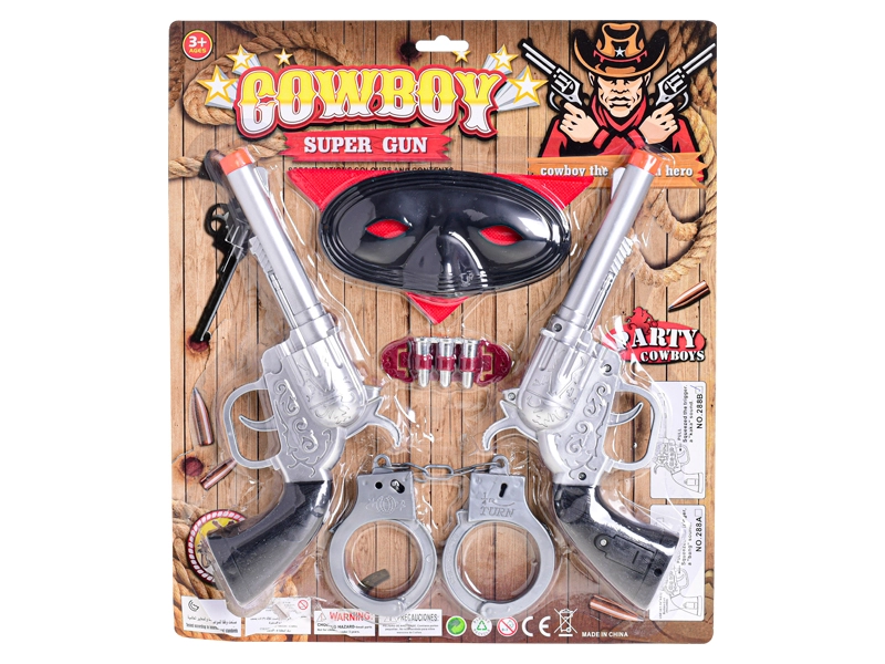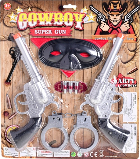 Co by to bylo za kovboje bez správné výbavy? S touto sadou ukážeš všem postrachům, jakou máš mušku, a předvedeš své dovednosti na Divokém západě. Dva kusy pistolí umožní hrát si s kamarádem nebo střídat role šerifa a bandity, maska dodá tajemství a pouta oživí akční scény.