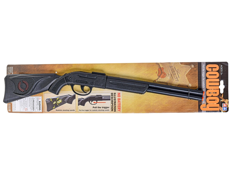Dopřejte dětem dobrodružství Divokého západu s touto kovbojskou klapací puškou o délce 50 cm. Lehká a snadno ovladatelná hračka z odolného plastu v černé barvě vydává autentický klapací zvuk při stisku spouště, což umocňuje hru na kovboje. Vhodná od 3 let, balená prakticky na kartě.