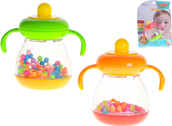 Chrastítko ve tvaru lahvičky 8 cm, 3 měsíce+, 3 barvy