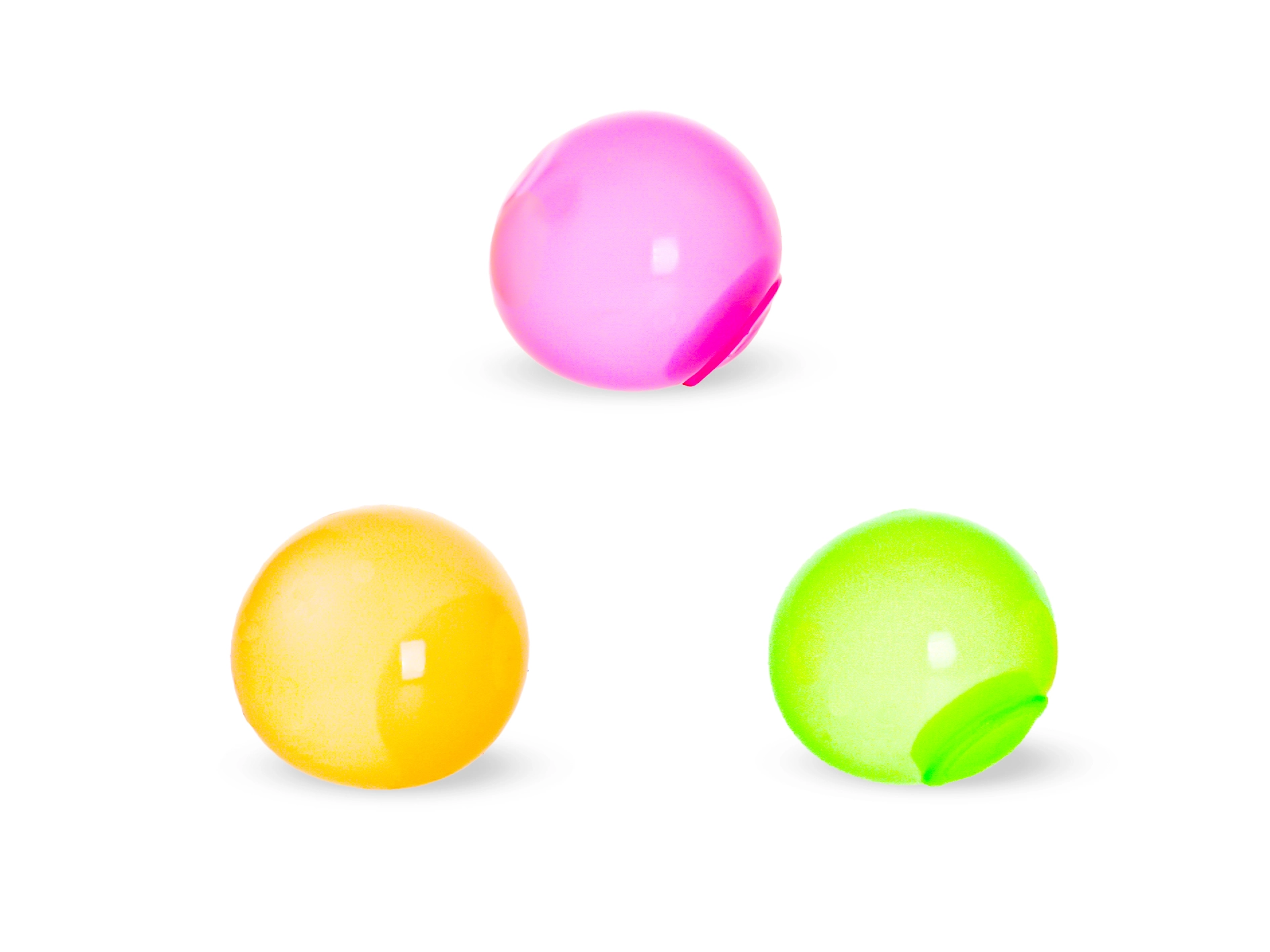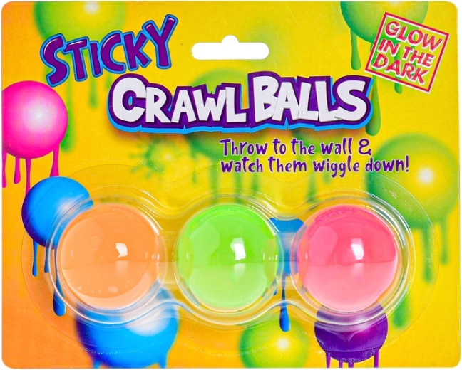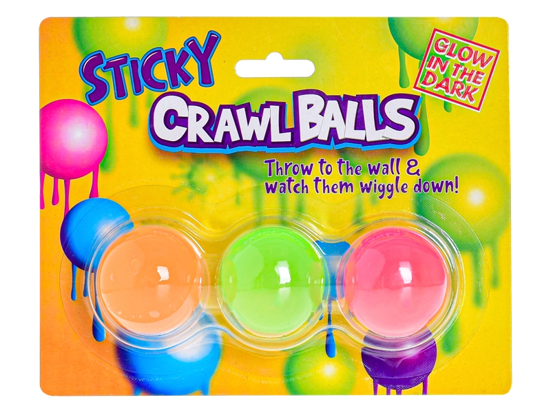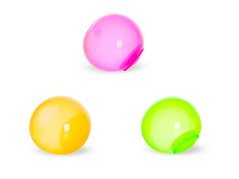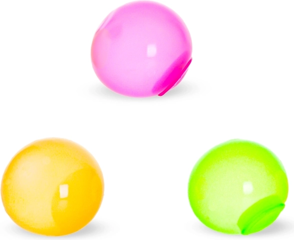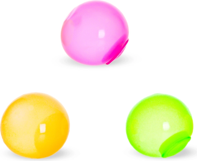 Zábavné antistresové míčky, které se po hození na hladký povrch přilepí jako bublina a ve tmě září. Lze je mačkat, natahovat a házet na sklo, kde drží. Průměr každého míčku je 4 cm, v balení jsou 3 kusy. Vhodné pro děti od 3 let.